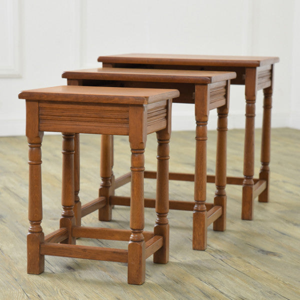 使い込むほどに味わいを増すブリティッシュオーク材を使用し、木彫、挽物細工の美しいディテールを備えたネストテーブルです。