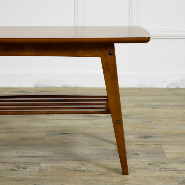 輸出向けの家具の中から最もシンプルなものを選び、日本の住宅に合わせた改良を施すことで生まれた60年代のカリモク家具。ジャパニーズモダンとも言える日本オリジナルのデザインは、普遍性をもったスタイルで空間や時代を選びません。丸みを帯びた天板のフォルム、幕板や脚などの細部に取り入れた柔らかな曲線が北欧のモダンデザインを感じさせます。お洒落なカフェスタイルやレトロなリビングスペースのコーディネートにおすすめです。