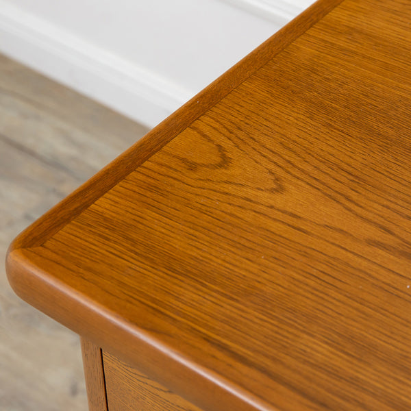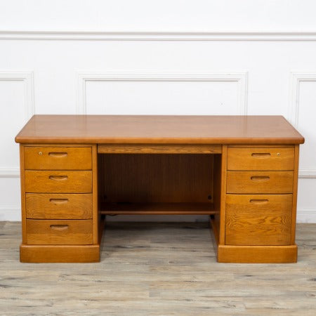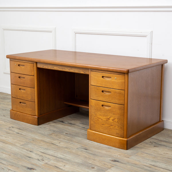 木目が美しいオーク材を贅沢に使用した両袖デスクです。装飾性を排した極めてベーシックなデザインではありますが、シンプルだからこそ素材の質感や作りの良さが際立つちます。