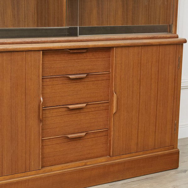 美しいチーク材をふんだんに使用したシンプルでありながながらも存在感あるデザインのブックシェルフ。取っ手のディテールなど細部に手の込んだ一品です。実用性の高さとスケール感を備えつつ北欧ヴィンテージ家具とも相性抜群の本棚です。