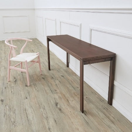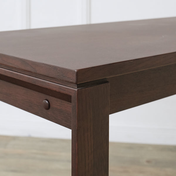 省スペースの書斎コーナーPCデスク向けの奥行きの浅いデスク。デスク下部に2口のコンセントの差込口があり、快適なデスクワークをサポートします。デスクとしての仕様はもちろん、カフェ空間やコンソールとしても使用できる使い勝手のいい一品。天板下にワゴンを置いても良さそうですね。