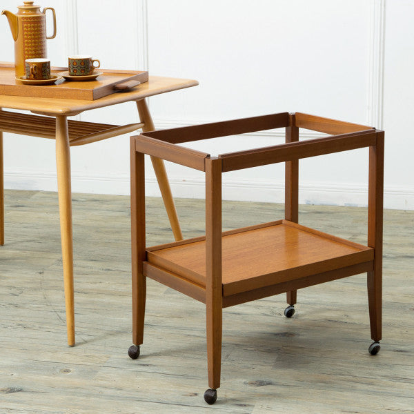 天板は取り外してお盆として活用できる仕様になっております。チーク材を使用し、シンプルですっきりとしたデザインです。