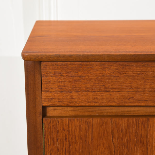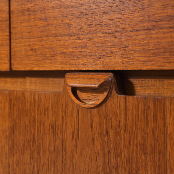ヴィンテージチークのあたたかな質感と端正なシルエット。削り出し取手が上品なアクセントを添えています。G PLANやMcIntoshと比べて流通が少ないことも、コレクター心をくすぐります。