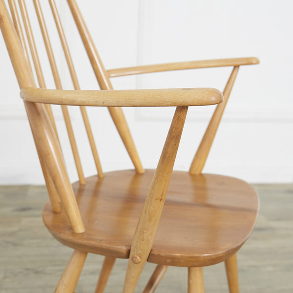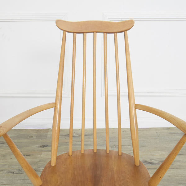 金細工師という名を持つこのイスは、アーコール社の椅子の中でも発表当時から一番人気のモデル。一番スタンダードなコームバックのウィンザーチェアをモチーフにしながらも座り心地の良いロングスティックの背もたれや広めの座面、カーブを描く飾り木等、実用性と程よい装飾性、個性を備えたデザインアレンジが施されています。
