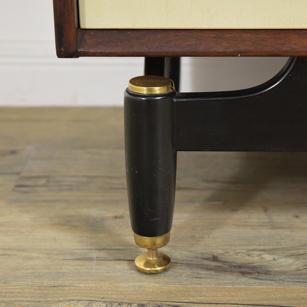 1950年後半に発売された『Tola&white(トーラ&ホワイト)』シリーズ。トーラ材の美しい色調とホワイトのペイント、真鍮メッキのゴールドのコントラストが目を惹きます。同時期に発売されたTola&blackは(トーラ&ブラック)は目にかかることがありますが、Tola&whiteは流通量がほとんどなく、手に入りにくい希少価値の高いシリーズです。