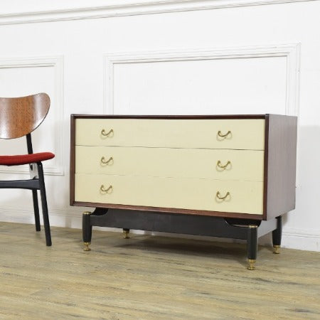 イギリスのミッドセンチュリーを代表する E.Gomme社、G-PLAN Tola&white ワイド3段チェストです。
