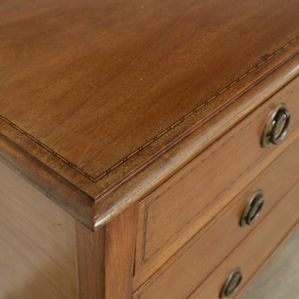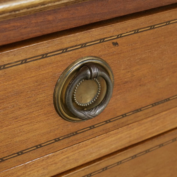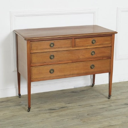 シンプルなストリンギング装飾が全体に施された上質なチェスト。古き良き西欧の伝統を感じさせるクラシカルなデザインで、使い込まれて程よく古びた風合いがアンティークならではの素朴で優しい雰囲気を演出します。