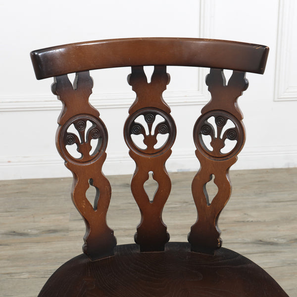 3つのホイールバックデザインの車輪部分に透し彫りを施したシスルバックチェア。日本ではシスル(アザミの花=スコットランドの国花)が彫られたデザインというエピソードが浸透しているためシスルバックと呼ばれていますが、本来はイギリス王子に与えられる称号であるプリンス・オブ・ウェールズの3枚の羽根の紋章をモチーフにしており、英国や日本以外の国では Prince of Wales Dining chairと呼ばれています。シンプルなアーコールチェアの中でも、華やかさをプラスしたアイテムとして大変人気のあるチェアです。