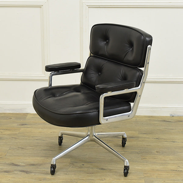 1960年、イームズ ウォールナット スツールとともに、米国のタイムライフビルの3つの超近代的なロビーのために作られたチェアで、「タイムライフチェア」という別名でも知られた一品。 大きめのサイズのエグゼクティブ・チェアは、アルミニウム・ベースとフレーム、そして見事に仕上げられたカバーを含めて、最高品質の素材で作られています。イームズの代表作品ラウンジチェアを踏襲しつつ、座り心地と使い勝手を最優先に考えたイームズ最高傑作の一つです。