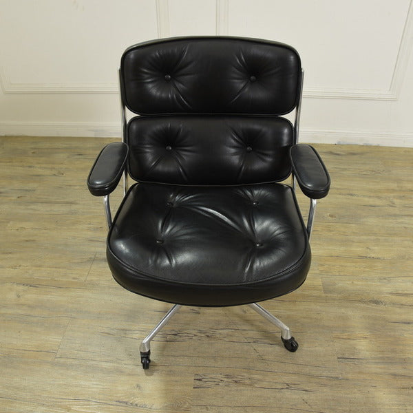 1960年、イームズ ウォールナット スツールとともに、米国のタイムライフビルの3つの超近代的なロビーのために作られたチェアで、「タイムライフチェア」という別名でも知られた一品。 大きめのサイズのエグゼクティブ・チェアは、アルミニウム・ベースとフレーム、そして見事に仕上げられたカバーを含めて、最高品質の素材で作られています。イームズの代表作品ラウンジチェアを踏襲しつつ、座り心地と使い勝手を最優先に考えたイームズ最高傑作の一つです。