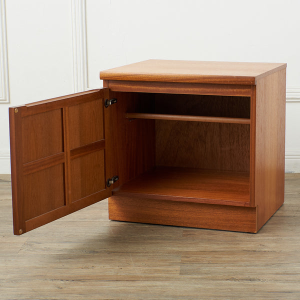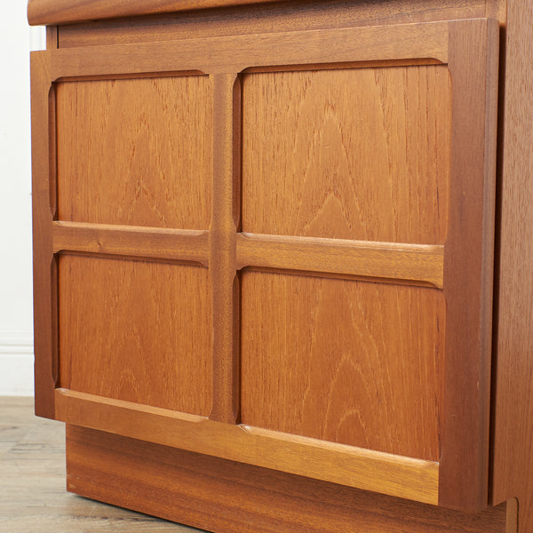 英国ミッドセンチュリー期にデザインされたNathan(ネイサン)社デザインのお品ですが、1981年にParker Knoll社が買収したことにより、Parker Knollから販売されたお品になります。 ヴィンテージチークのあたたかな質感と、少しクラシック家具寄りの前面扉框構造が印象的。洗練された手の込んだ英国らしいお品で、G-PLANやMcIntoshと比べて流通が少ないこともコレクター心をくすぐります。
