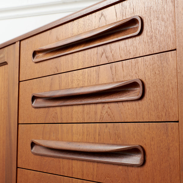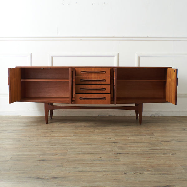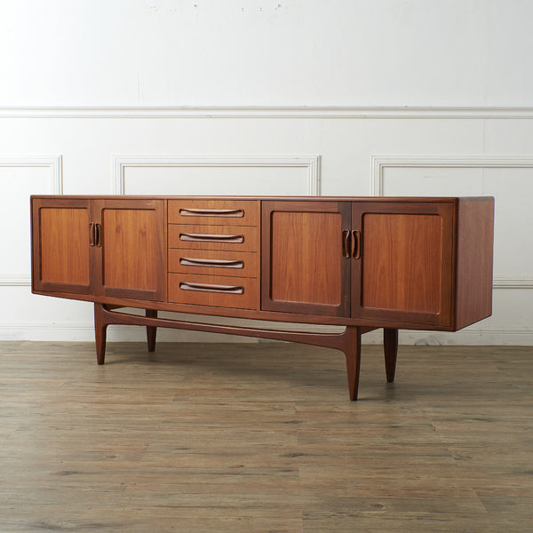 英国ミッドセンチュリー期を代表するブランド G-PLAN(ジープラン)による、Victor Bramwell Wilkins(ビクター・ブラムウェル・ウィルキンス)デザイン『Fresco(フレスコ)』脚付きロングサイドボードです。
