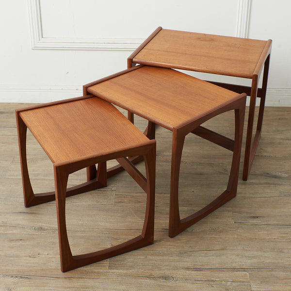 イギリスのミッドセンチュリーを代表するブランド G-PLAN(ジープラン)による、Roger Bennett(ロジャー・ベネット)デザイン、Quadrille(クヮドリール)シリーズ ネストテーブルです。