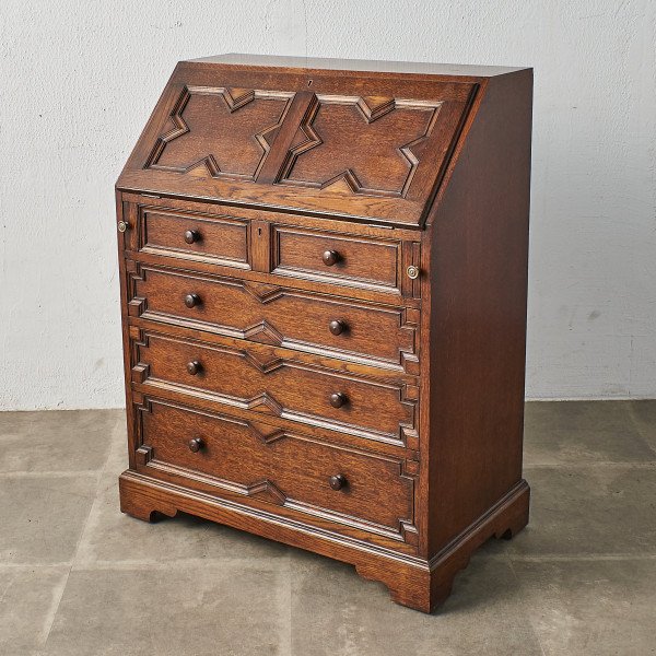英国アンティーク、ジャコビアン様式のブリティッシュオーク材ライティングビューローです。