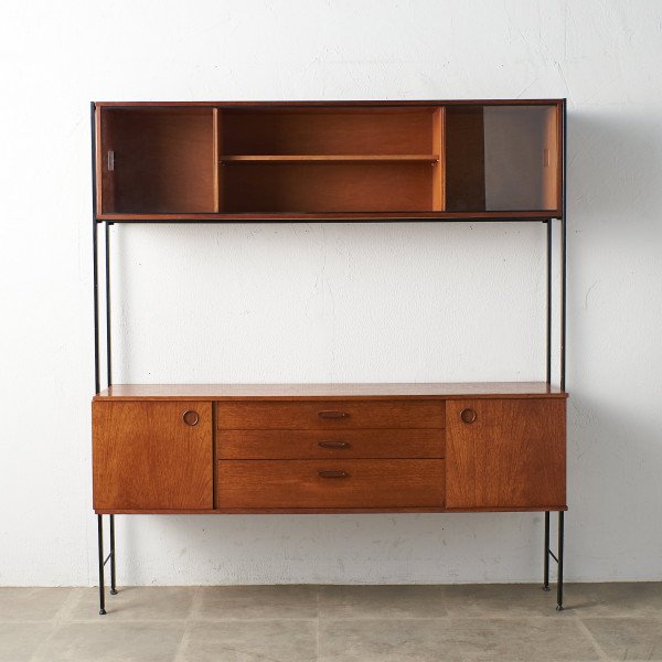 日本のヴィンテージ市場では余り見ることのない、レアなアイテムです。無骨な鉄製フレームとチーク棚板のコントラストが印象深いオープンシェルフ。お好みよって棚板を自由に組み換えることが可能です。北欧の年代物とも相性の良い、ミッドセンチュリー期にデザインされたヴィンテージファニチャーです。