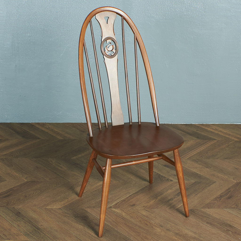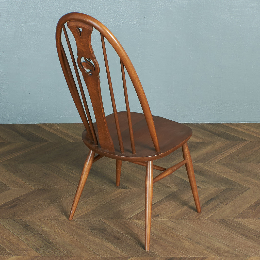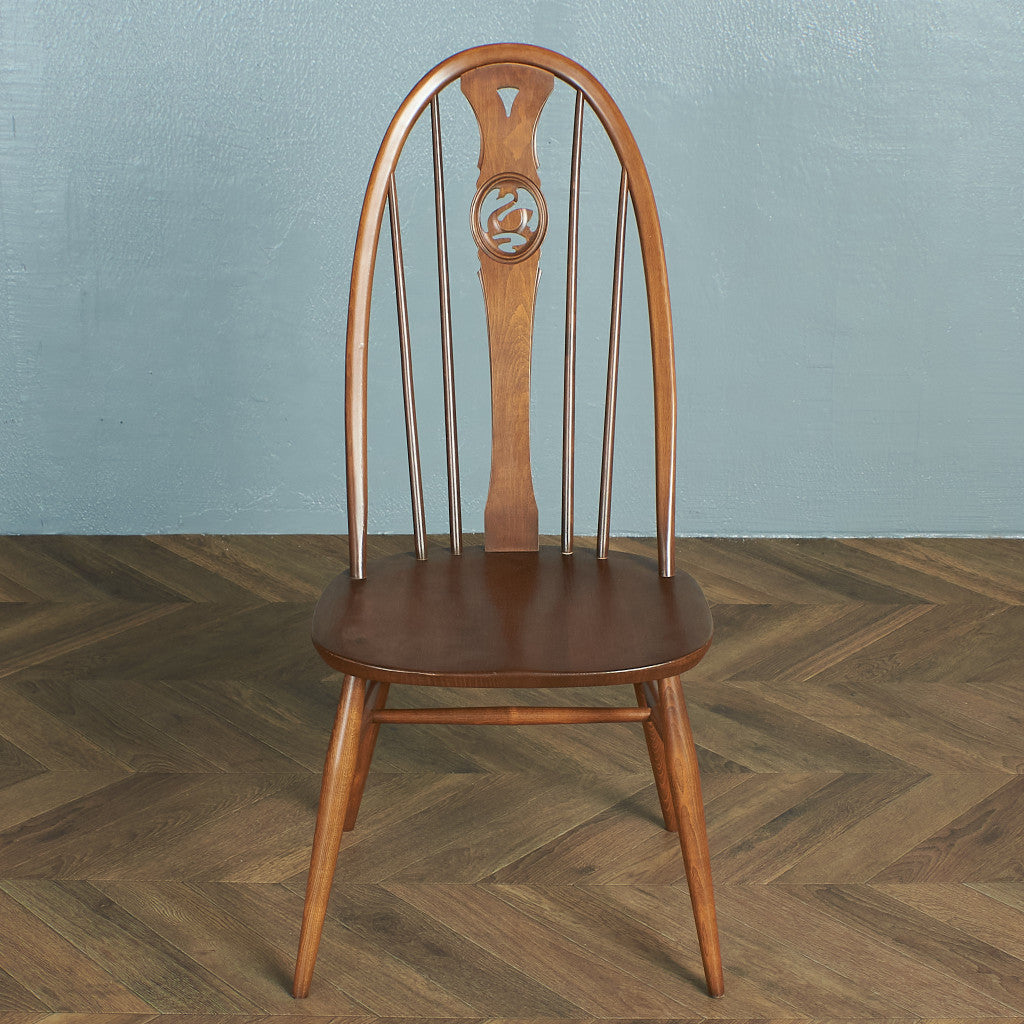 アーコールのクエーカーチェアをベースに、ウィンザーチェアの“ホイールバック(車輪)”を、白鳥の透かし彫りにしたスワンバックチェア。シンプルなアーコールチェアの中でも優雅さをプラスしたアイテムとして人気のあるお品です。