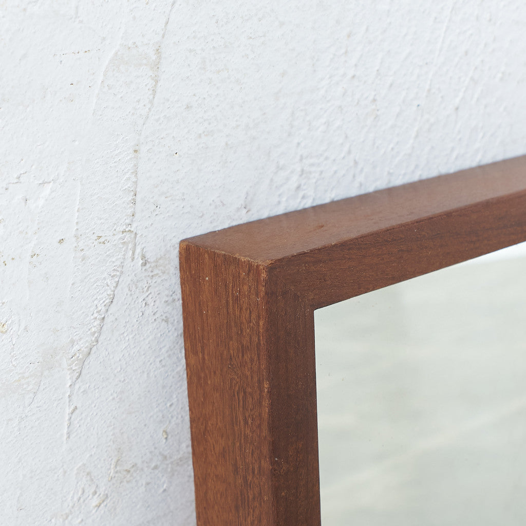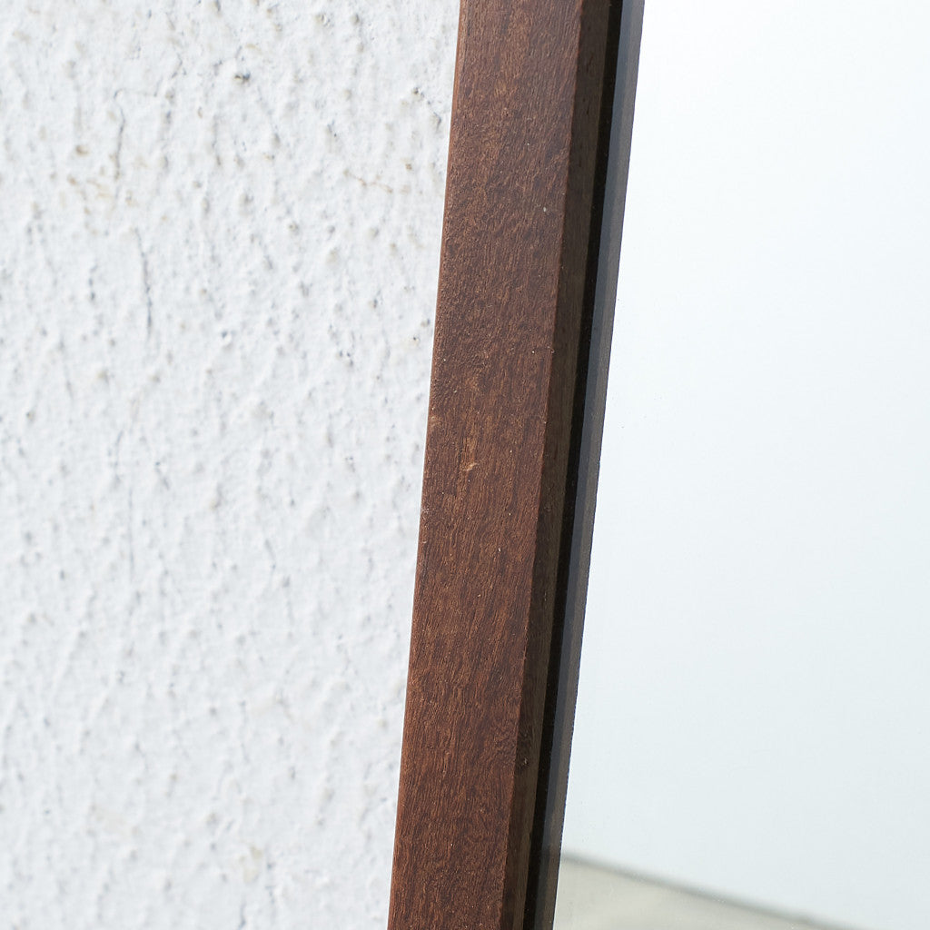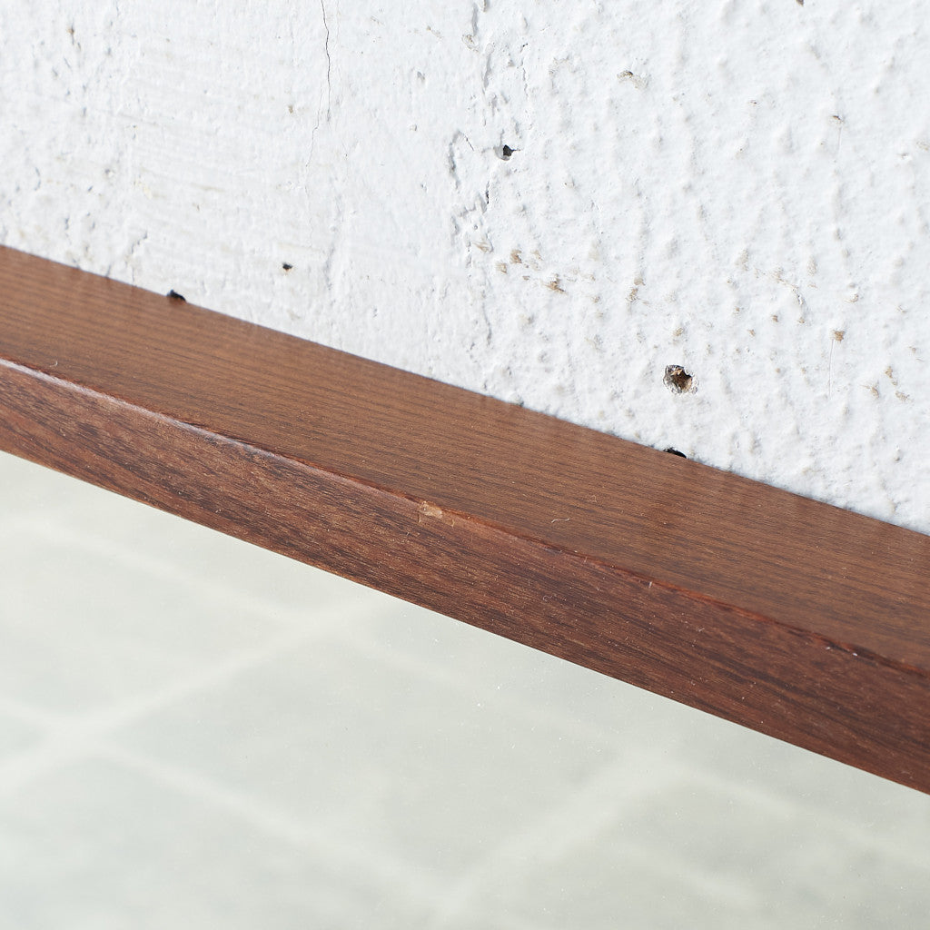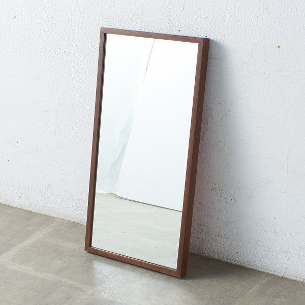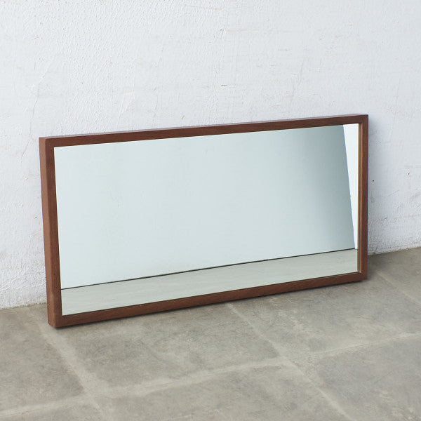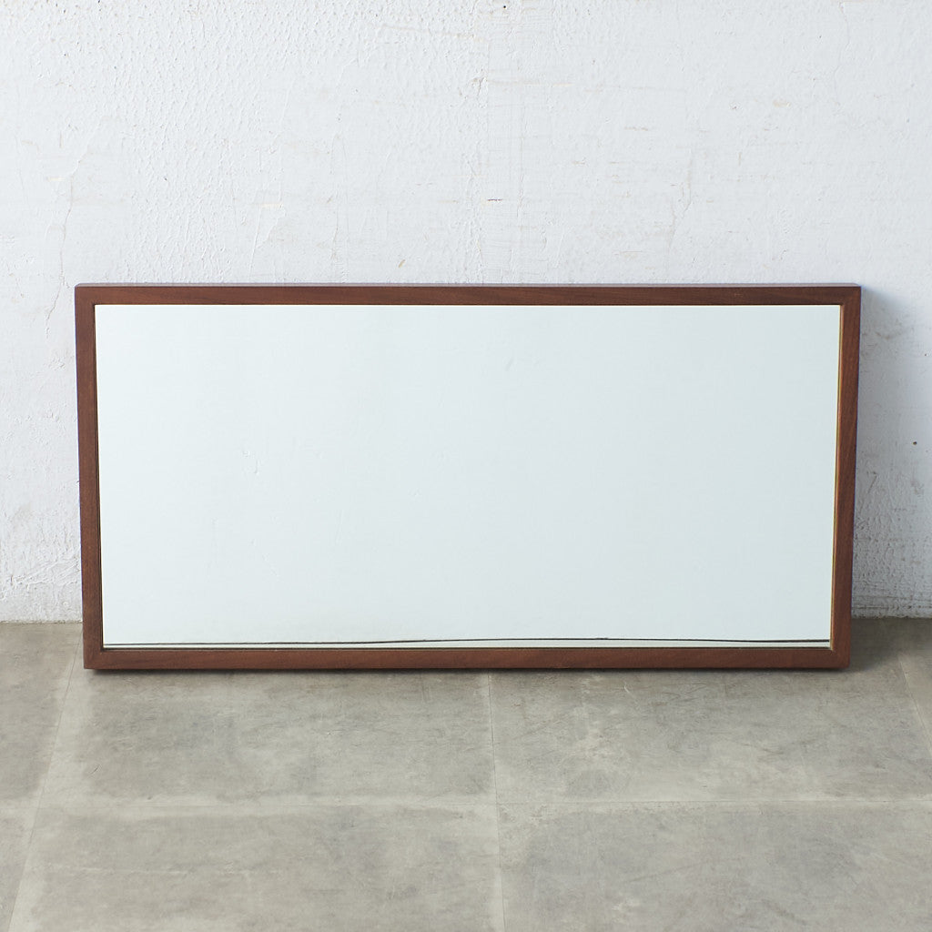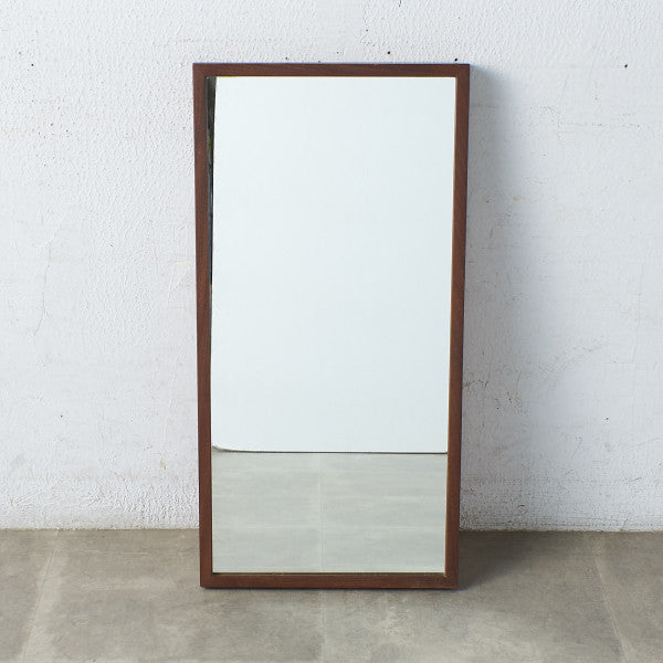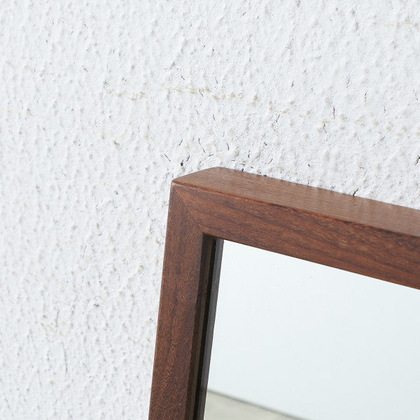 温かみのある褐色の木肌に、北欧スタイルのデザインが美しいヴィンテージミラー。デンマークの年代物やミッドセンチュリーインテリアとも相性の良いお品です。