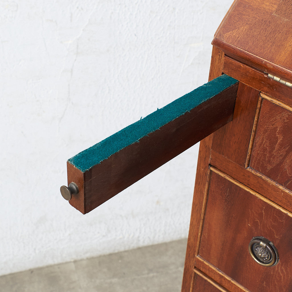 濃淡ある木目のウォールナット材の木肌が美しいビューロー。小ぶりなサイズ感で、大変使い勝手のいい一品。クラシック家具ならではの心地よい温もり、程よく古びた風合いが素朴で優しい雰囲気を演出します。