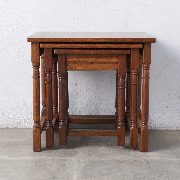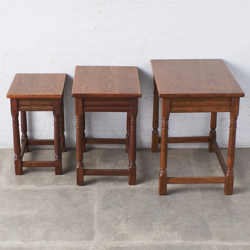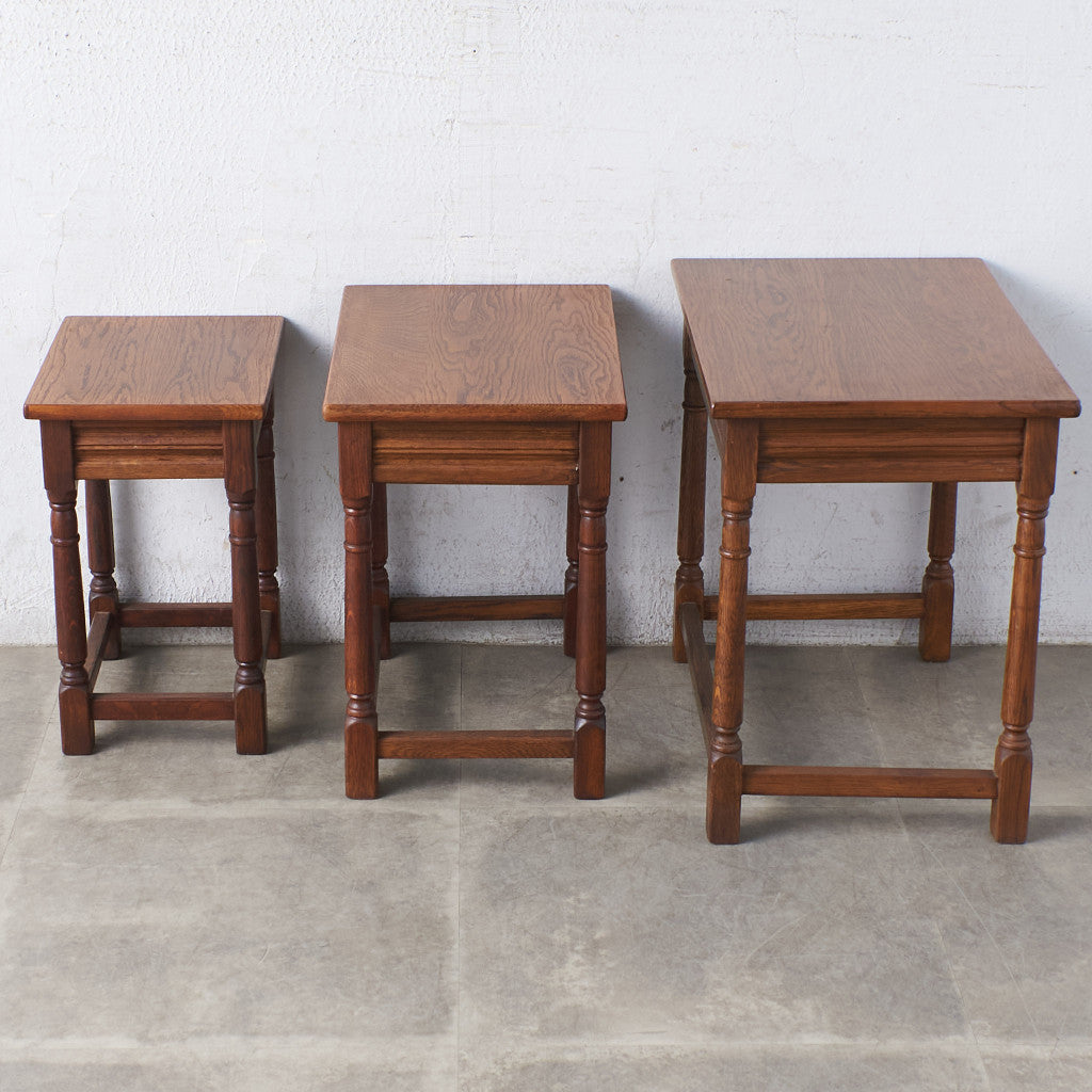 用途に合わせて引き出したり、纏めたりできるとても便利な入子構造のネストテーブル。リビングのサイドテーブルや寝室に置くナイトテーブルとして、フレキシブルにお使い頂けます。
