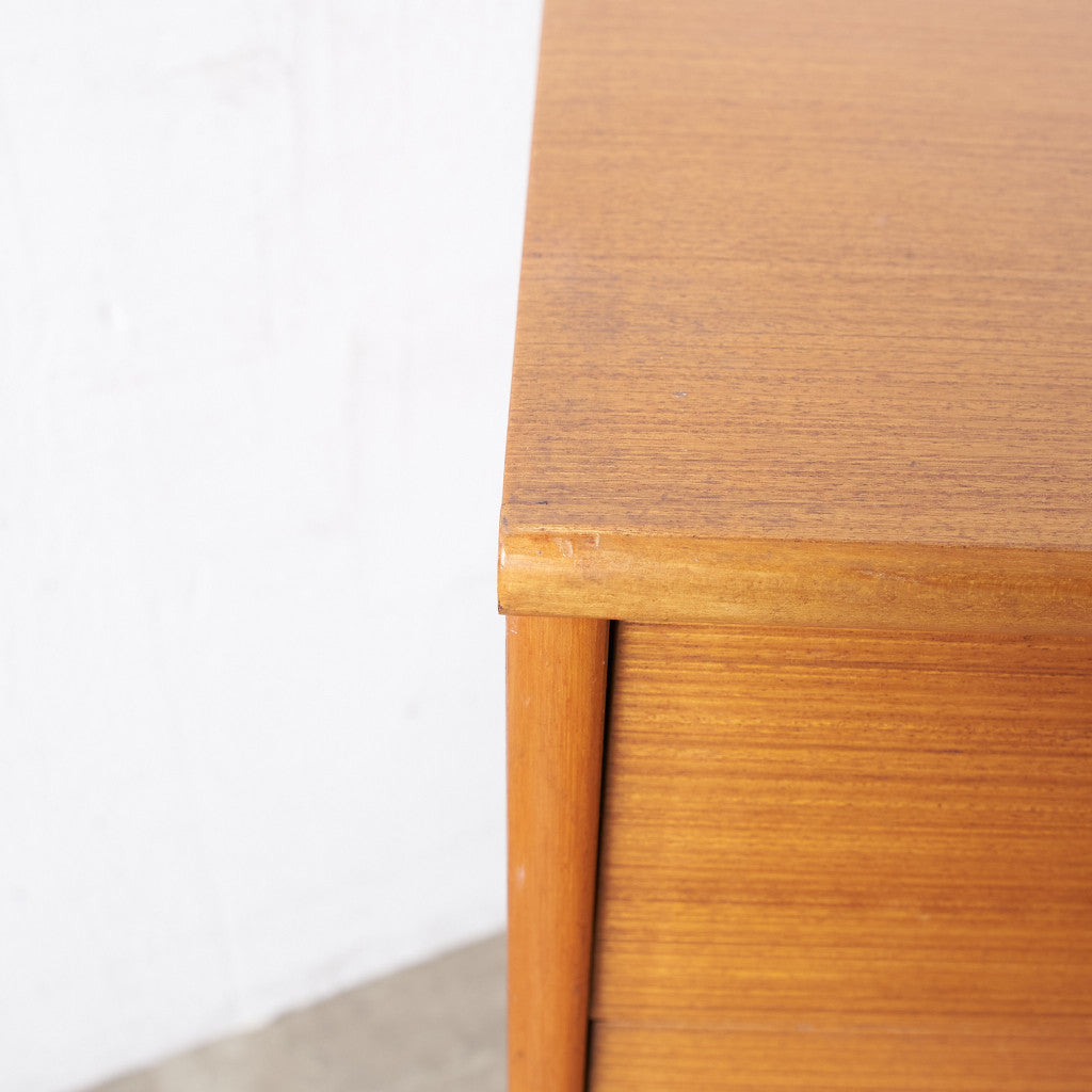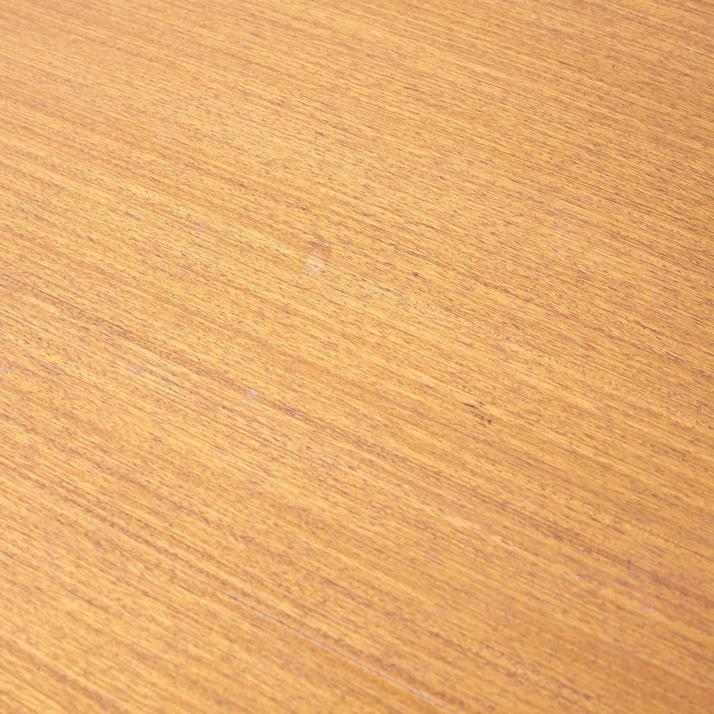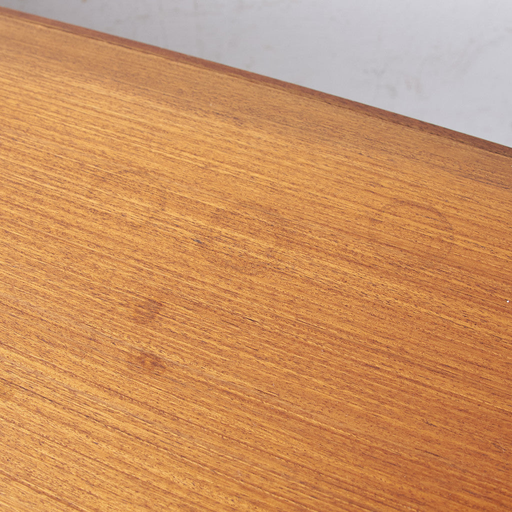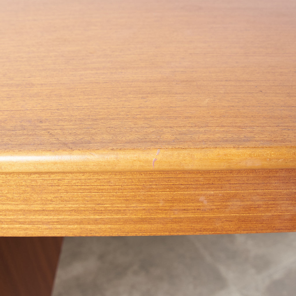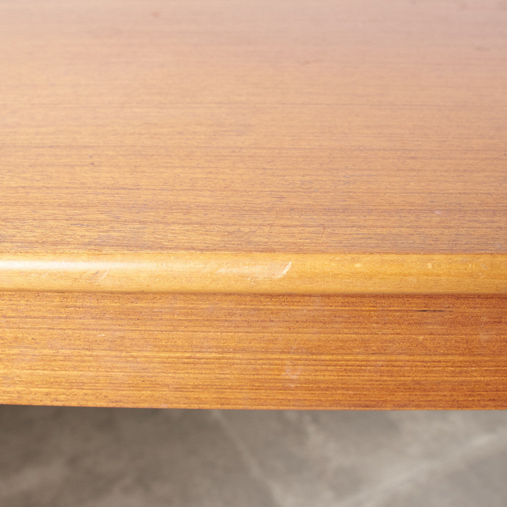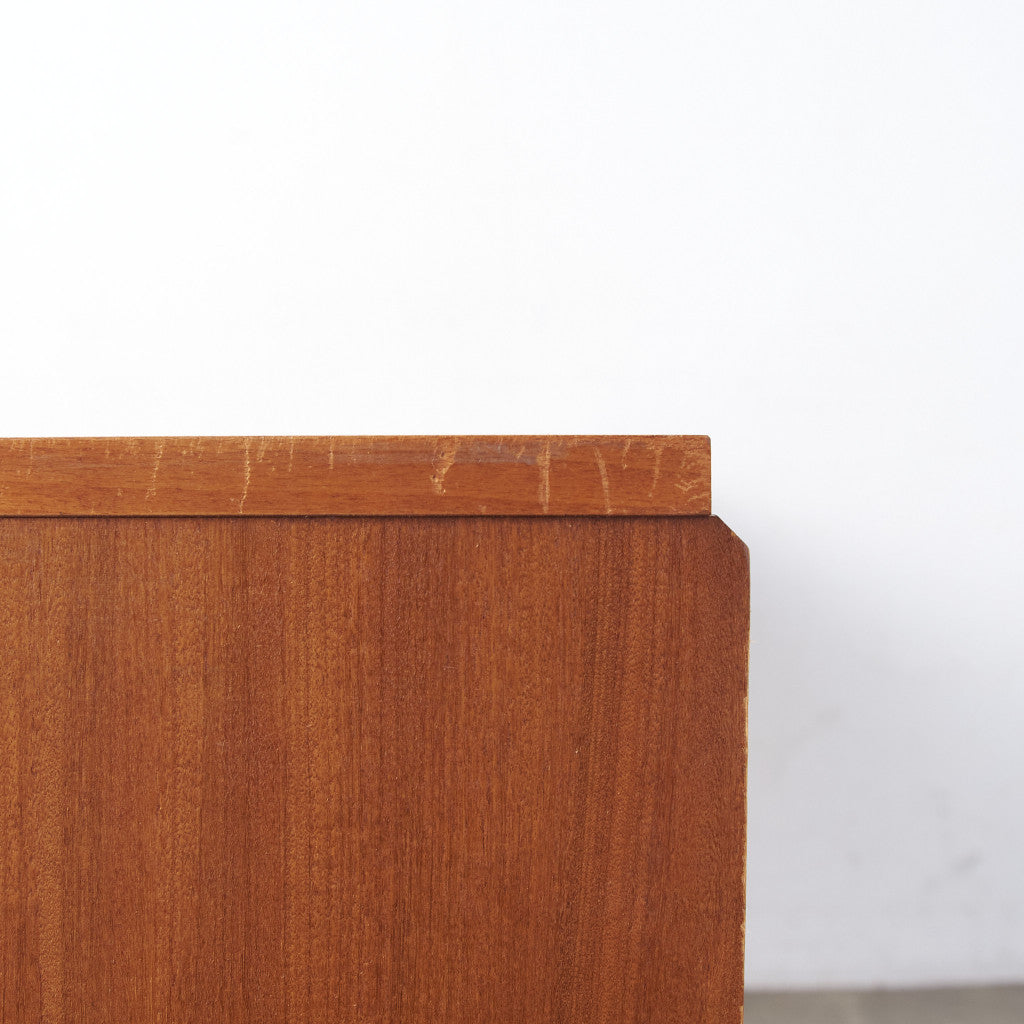 今では希少な高級材であるチーク材を使用した温かみのある褐色の木肌が印象的。研ぎ出された滑らかな取っ手など、実用的でありながらも作り手のこだわりを感じさせるヴィンテージファニチャーです。