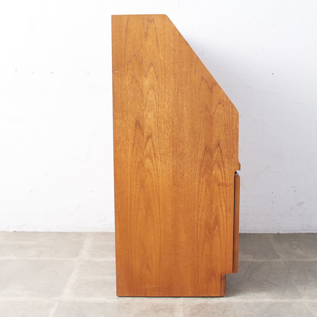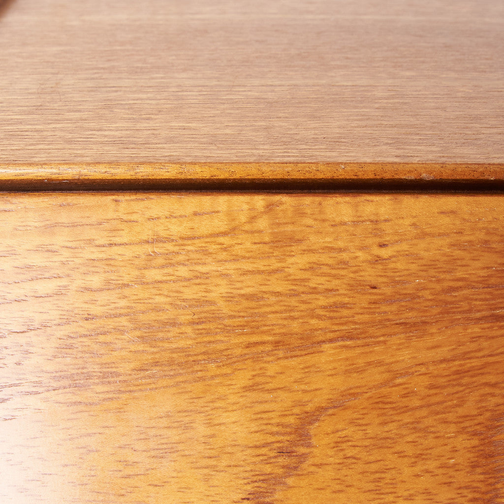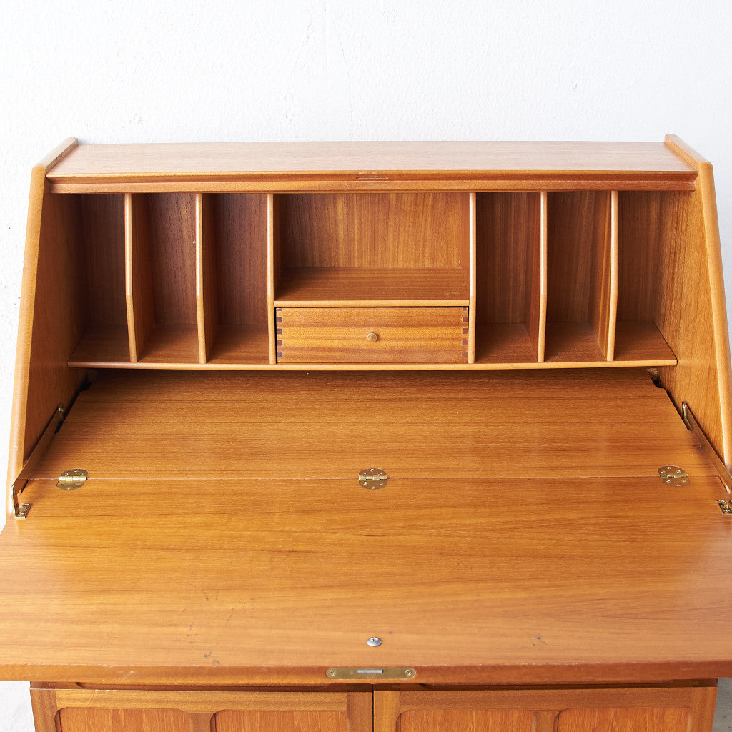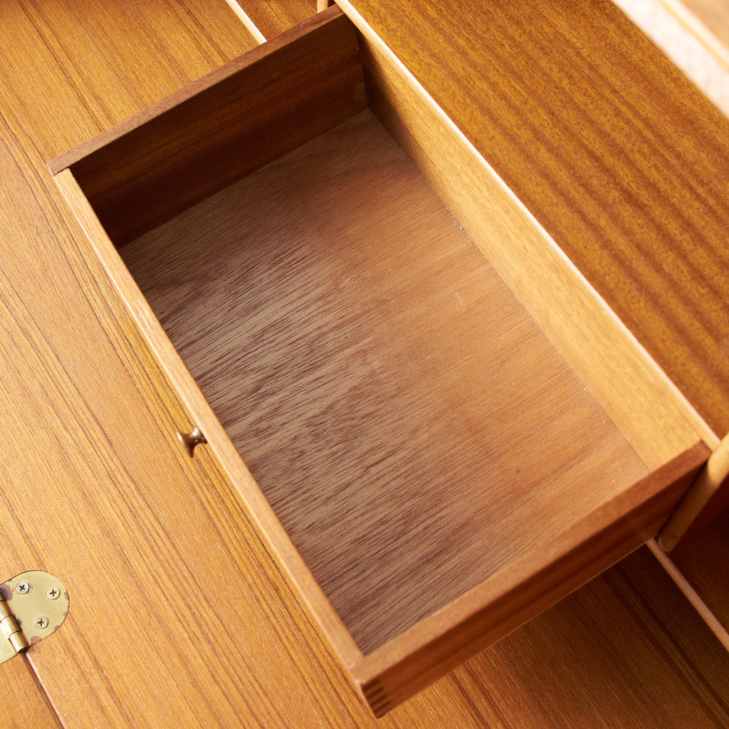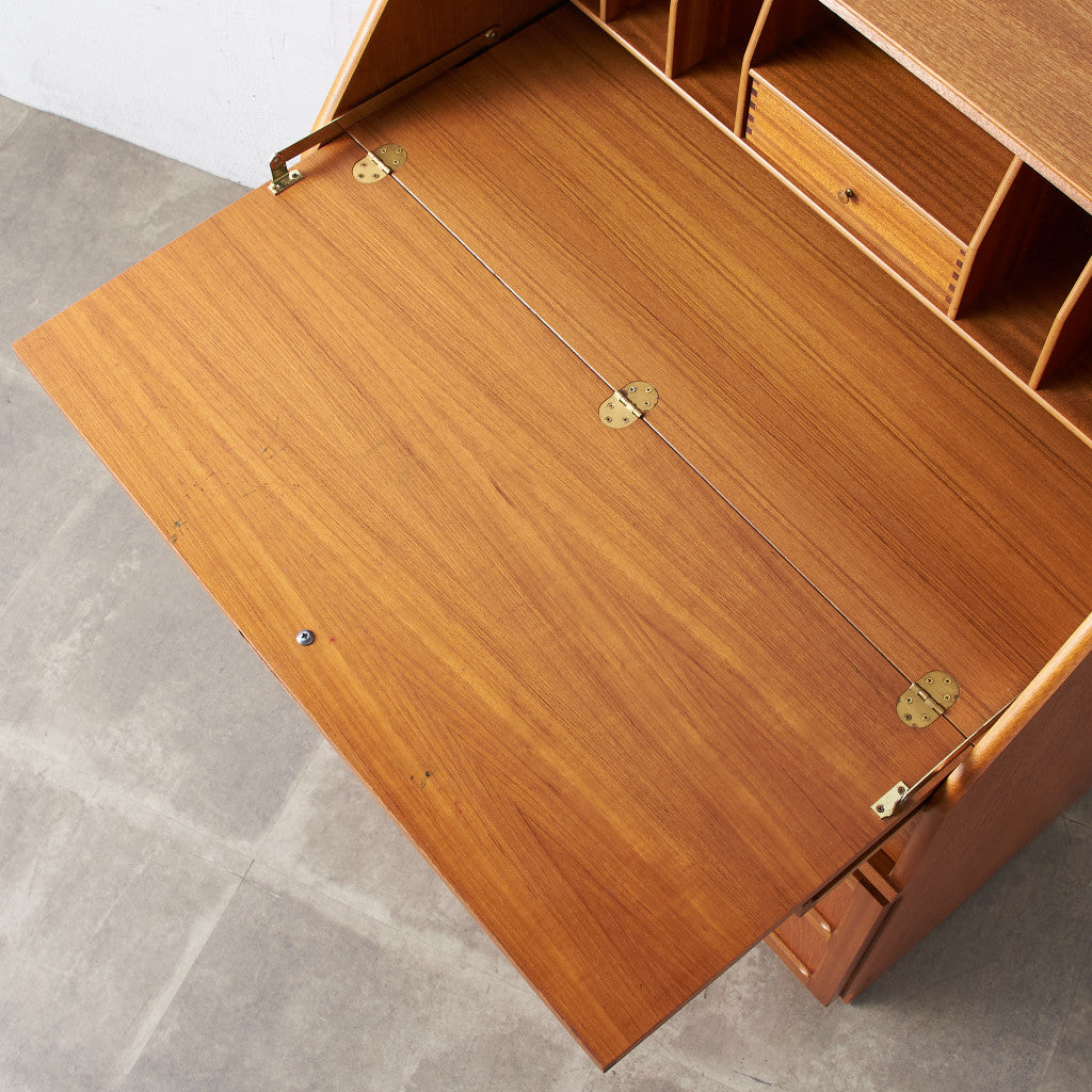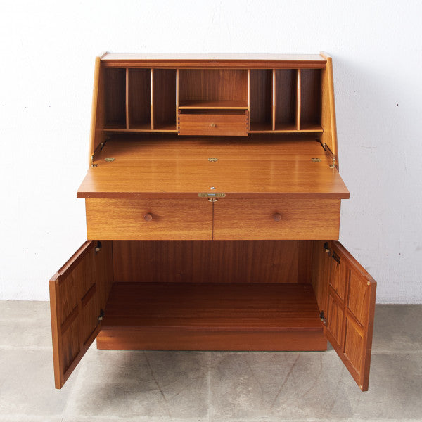 かなり珍しいNathan社のライティングビューロー。シンプルでオーソドックスなスタイルのライティングビューローですが、ヴィンテージチークのあたたかな質感と少しクラシック家具寄りの前面扉框構造がNathanらしい個性を放っています。G-PLANやMcINTOSHと比べて流通が少ないこともコレクター心をくすぐります。