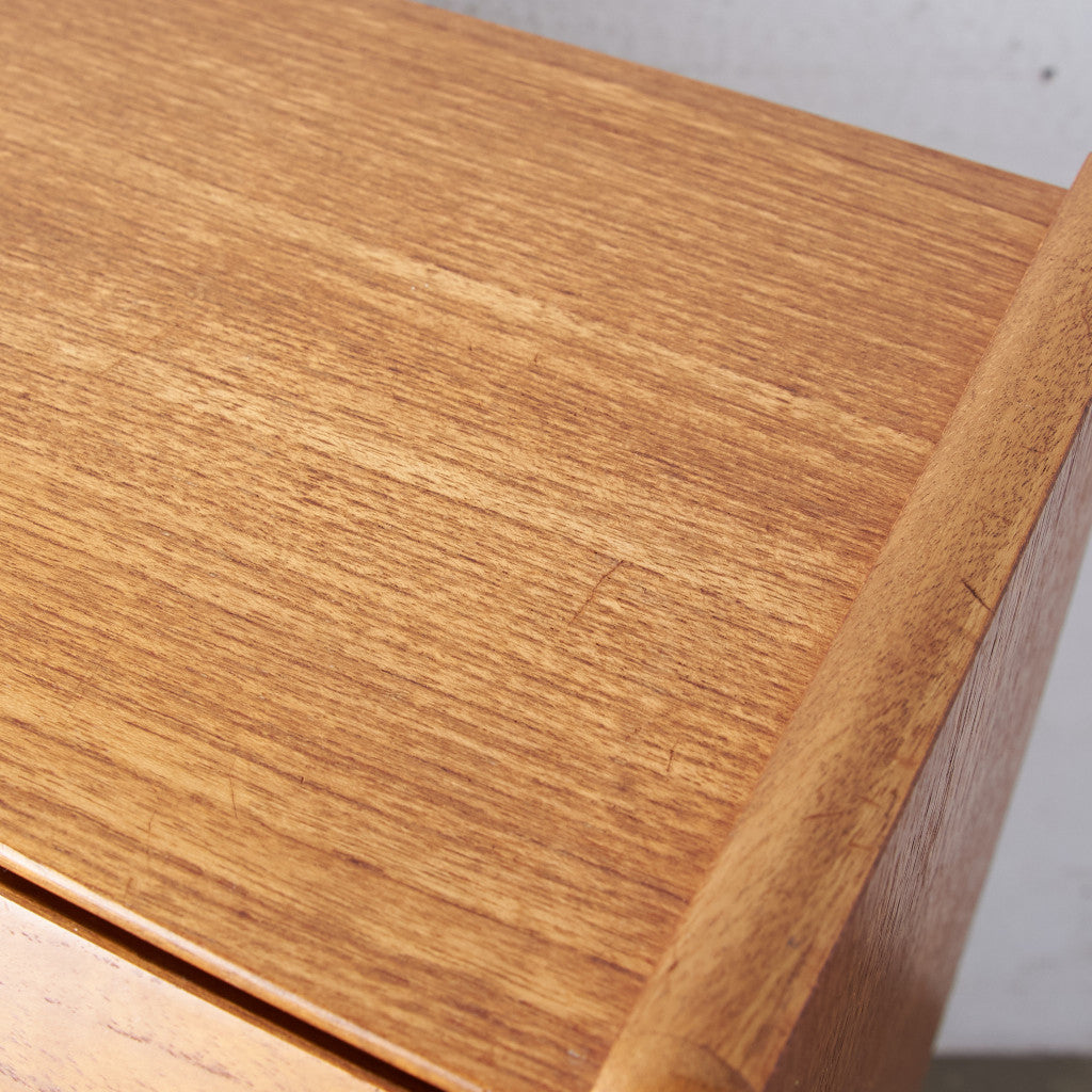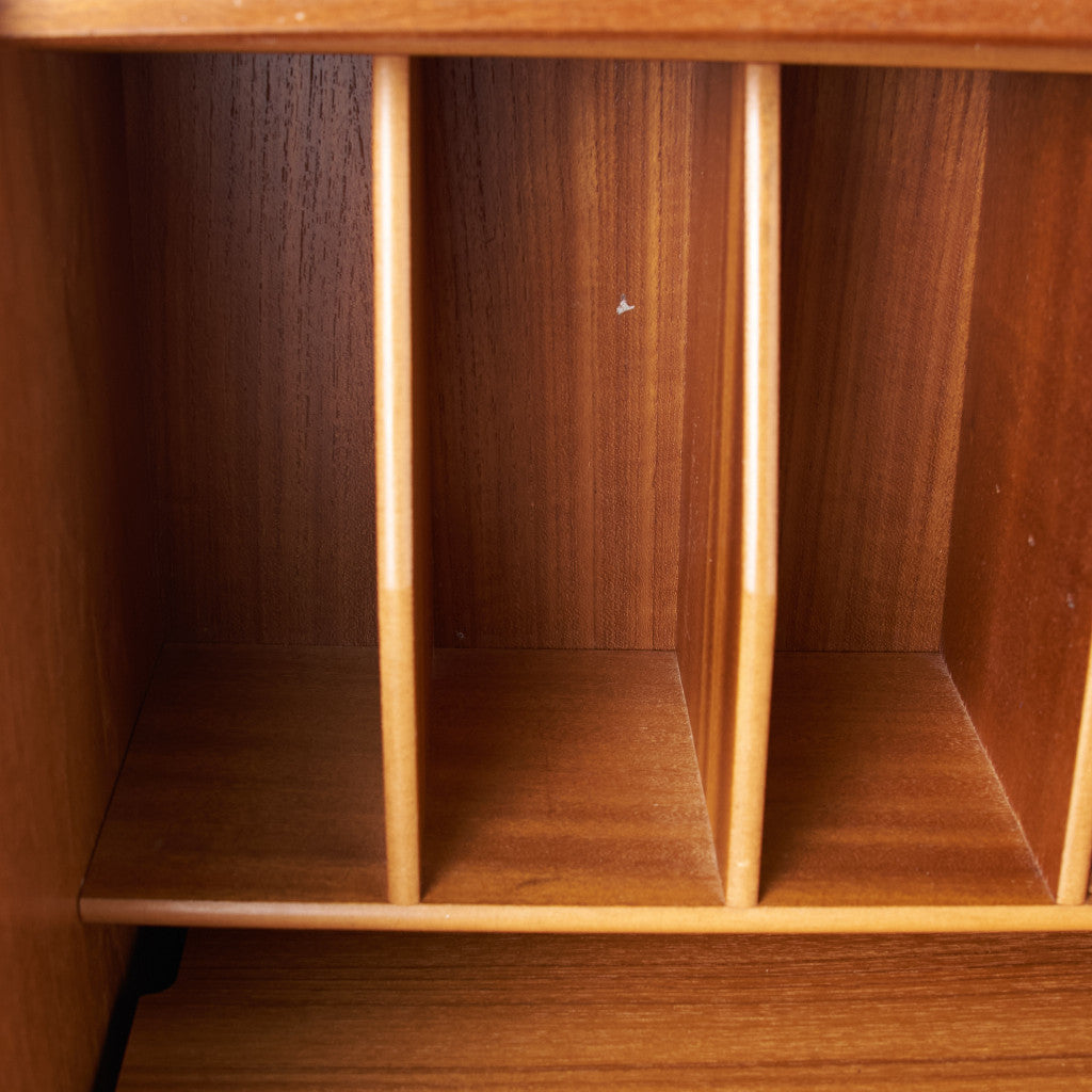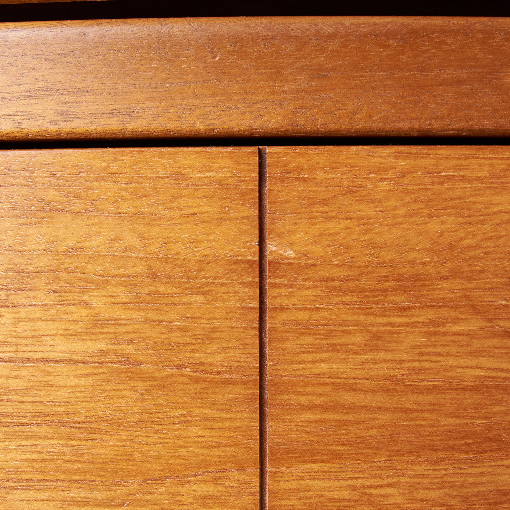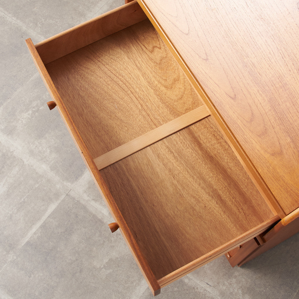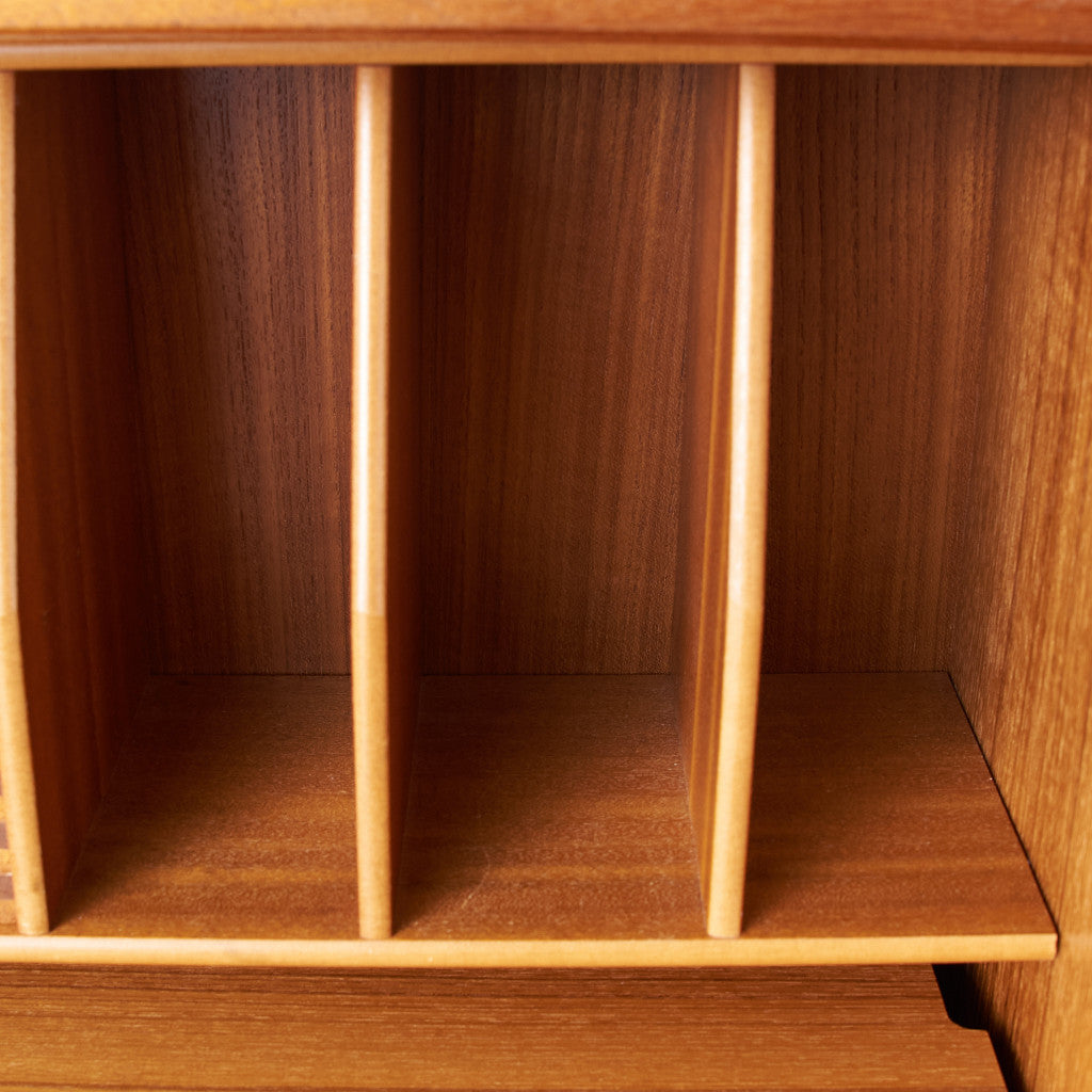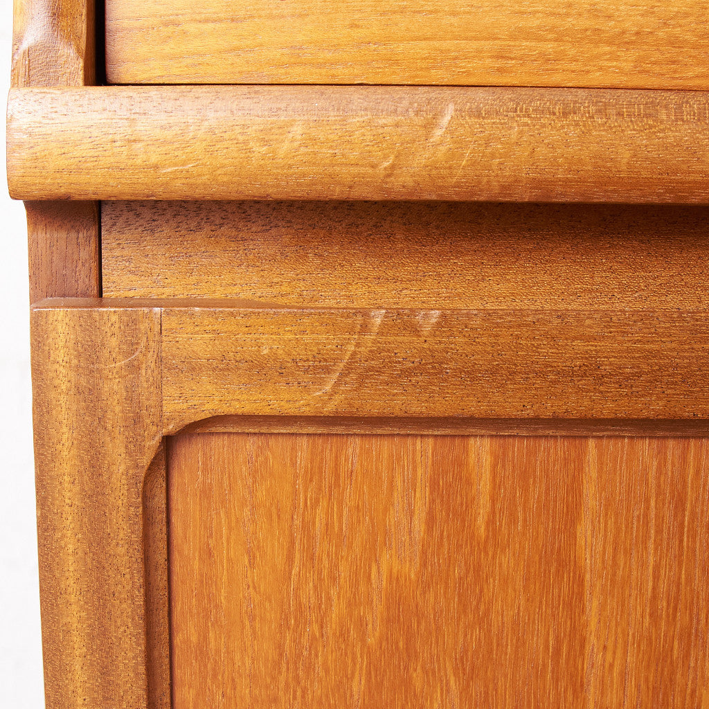 かなり珍しいNathan社のライティングビューロー。シンプルでオーソドックスなスタイルのライティングビューローですが、ヴィンテージチークのあたたかな質感と少しクラシック家具寄りの前面扉框構造がNathanらしい個性を放っています。G-PLANやMcINTOSHと比べて流通が少ないこともコレクター心をくすぐります。