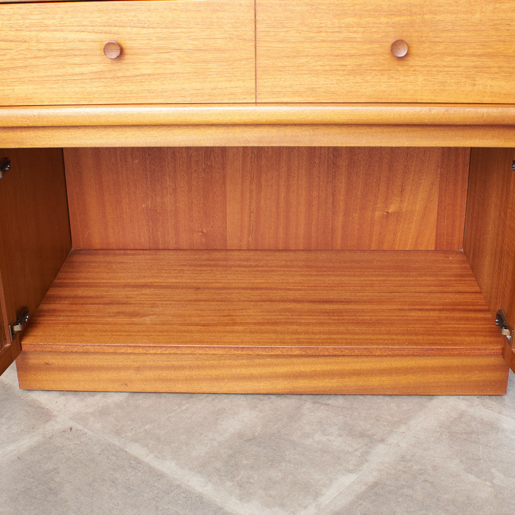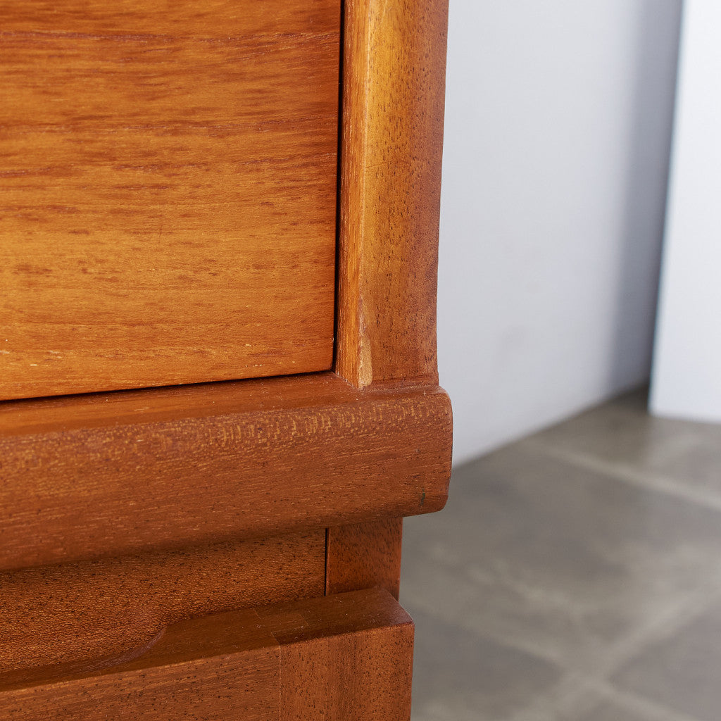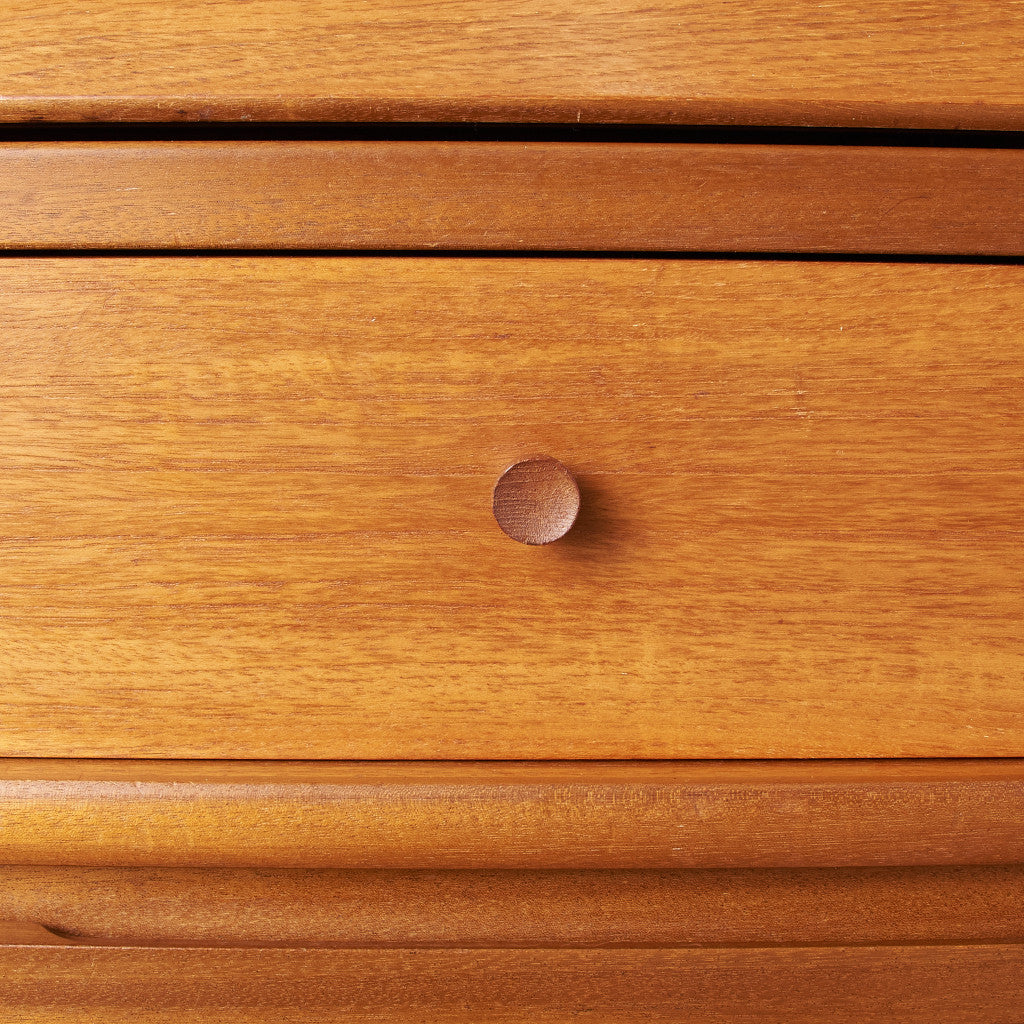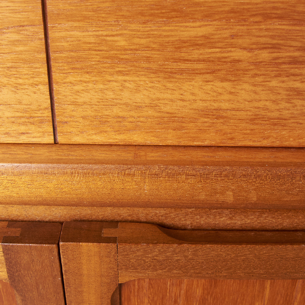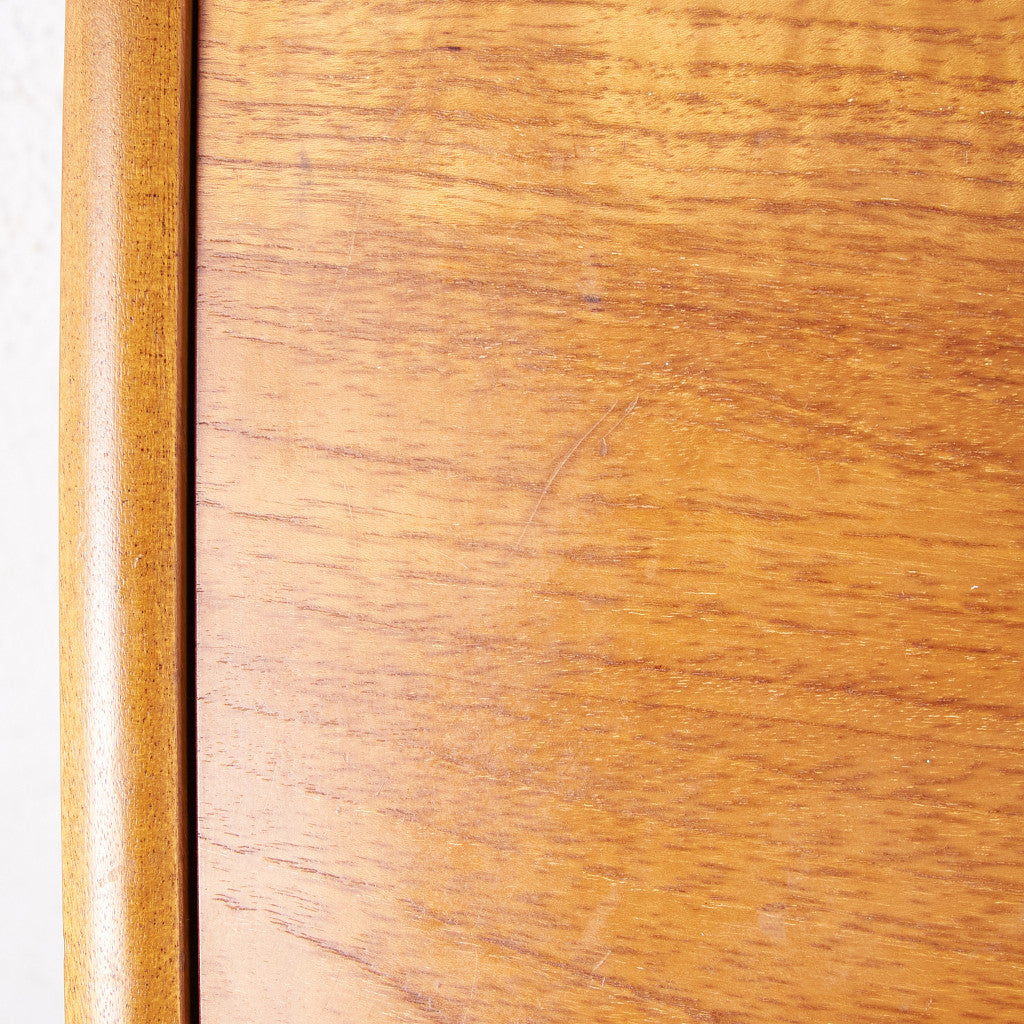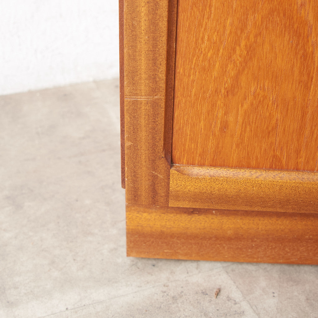 かなり珍しいNathan社のライティングビューロー。シンプルでオーソドックスなスタイルのライティングビューローですが、ヴィンテージチークのあたたかな質感と少しクラシック家具寄りの前面扉框構造がNathanらしい個性を放っています。G-PLANやMcINTOSHと比べて流通が少ないこともコレクター心をくすぐります。