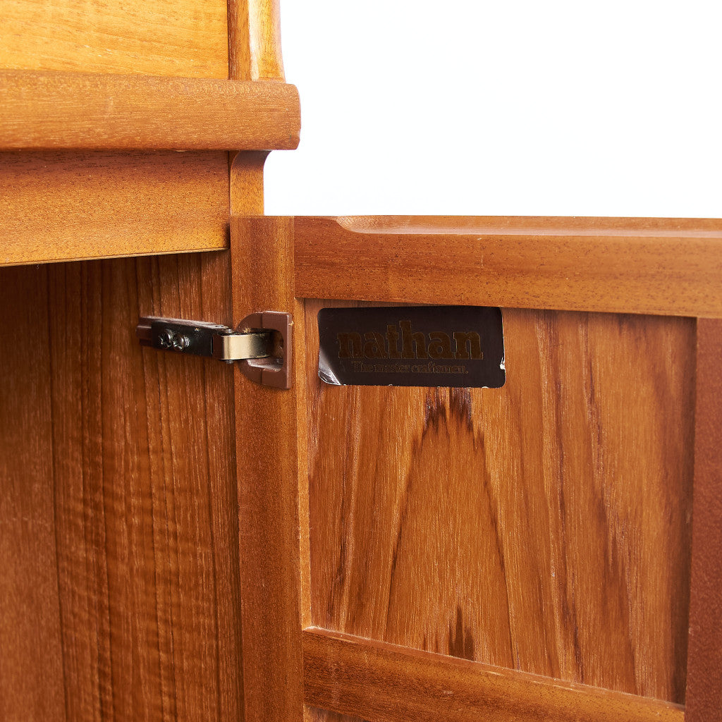 ネイサン社の創業は1916年、イギリス・ロンドンでロシア出身のバーネット・ネイサンが手作りの家具を製造したことに遡ります。1954年ニュー ヨークで開かれた家具展覧会においてイギリスを代表するデザインとして選ばれて一躍有名になり、チーク材の家具を本格的に生産。G-planシリーズで有名なエベネゼル・グーム社と並び、イギリスミッドセンチュリーを代表する家具メーカーへと発展しました。とくに「クラシックレンジ」シリーズは、時代を超越したデザインで優れた快適性と職人技が見事に融合。クラシックと北欧スタイルの折衷的な独自のデザインスタイルを生み出し、ジャコビアンドアスタイリングと美しいチーク材の組み合わせの自然な輝きがロンドンの都市生活者を虜にしました。