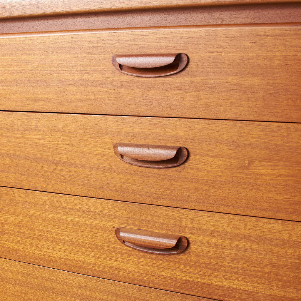 今では希少な高級材であるチーク材を使用した温かみのある褐色の木肌が印象的。実用的でありながらも作り手のこだわりを感じさせる、北欧の年代物とも相性の良いヴィンテージファニチャーです。