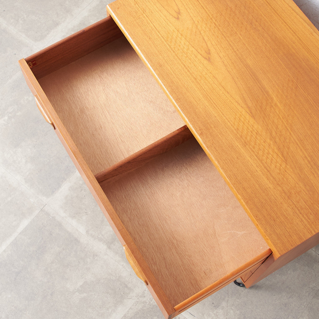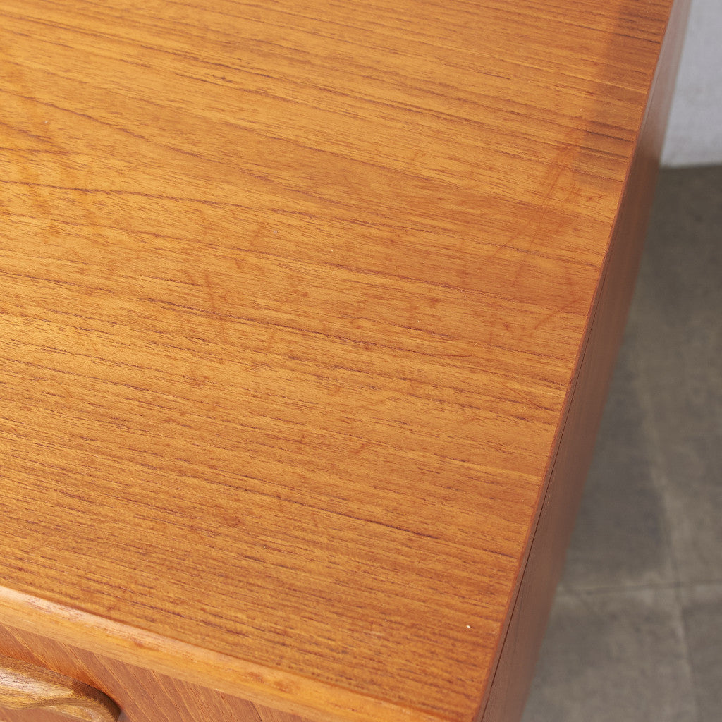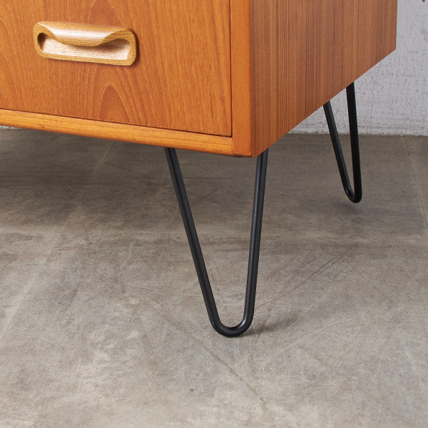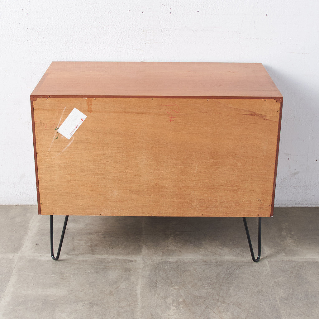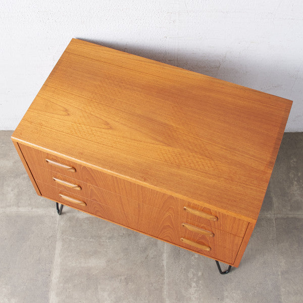 英国ミッドセンチュリーの筆頭ブランド、G-PLAN(ジープラン)による、Victor Bramwell Wilkins(ビクター・ブラムウェル・ウィルキンス)デザイン『Fresco(フレスコ)』シリーズ、カスタム アイアンレッグ 3段チェストです。