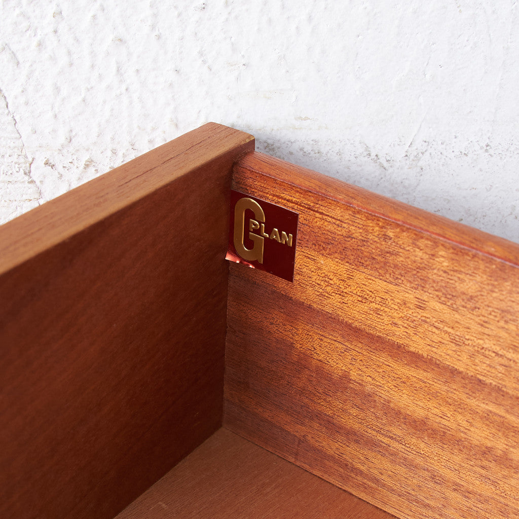 1898年創業の英国ハイ・ウィカムという町の「Ebenezer Gomme(エベネゼル・グーム)」社により 1952年に打ち出された家具ブランドです。1950年代の北欧家具ブームをイギリスで最初に取り込み1960年台にはロンドンの都市生活者の象徴と言われるほどの人気を集めました。「G」とはグーム社の頭文字、「PLAN」とはプランニング=「ライフスタイルを計画する」という商品コンセプトは単品はもちろんのこと、少しずつ買い揃えることによりトータルにモダンな部屋づくりが楽しめるという、当時としては画期的な発想でした。1987年には会社が売却され、紆余曲折を経てイングランド西部にある「G Plan Upholstery」がソファ類を、スコットランドにある「G Plan Cabinets」がキャビネットの製造を続けています。
