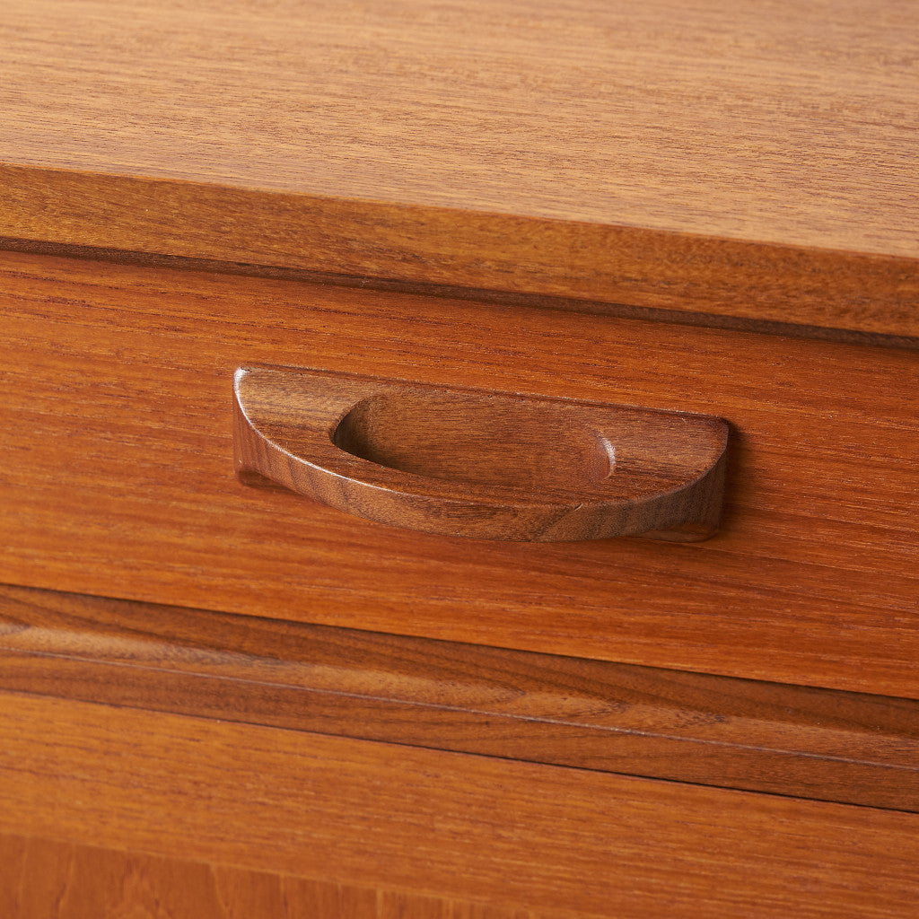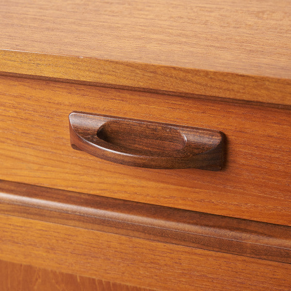 1970年代に発表されたSierra(シエラ)シリーズ。ラーセンがデザインしたデニッシュシリーズから継承してきた、フレスコシリーズやブラジリアシリーズといった丸みのある北欧スタイルのシルエットを払拭し、初期のブランドンシリーズのような直線を主体としたデザインが特徴。まさに、原点回帰と言えるシリーズです。G-PLANの全てのシリーズの中で最も販売台数が多かったと言われている人気シリーズですが、日本に入ってくる数は極端に少なく、大変希少なアイテムとなっています。