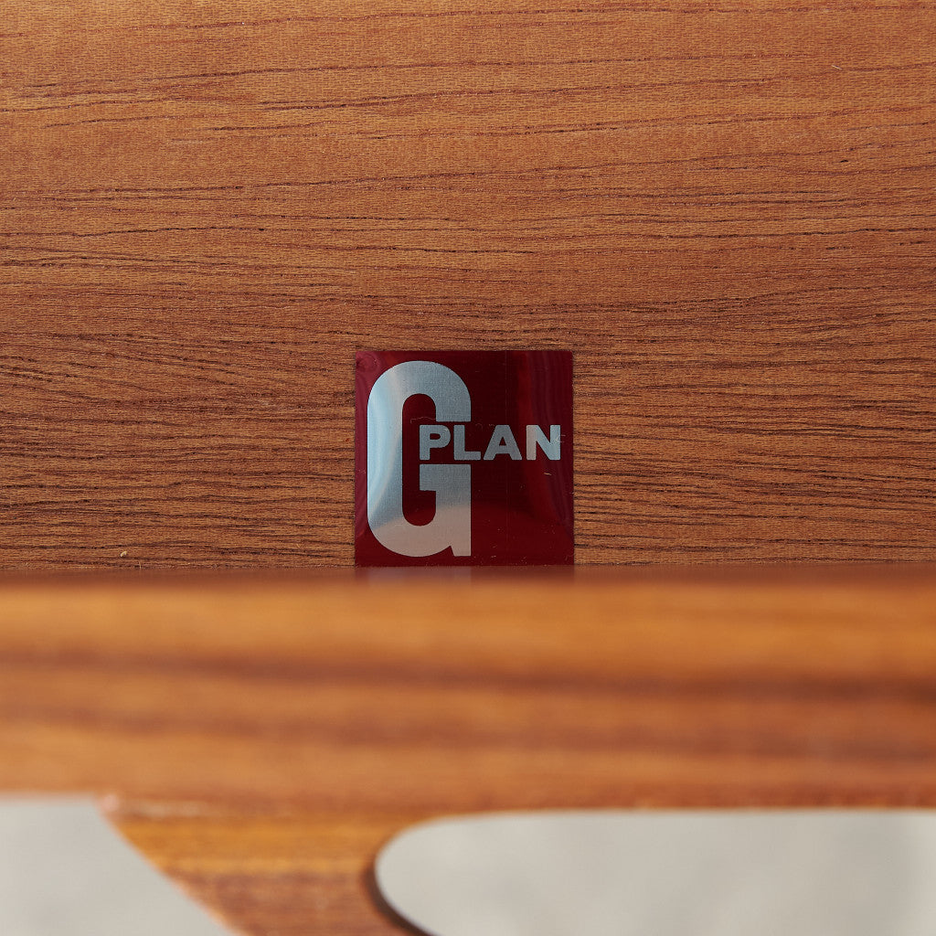 1898年創業の英国ハイ・ウィカムという町の「Ebenezer Gomme(エベネゼル・グーム)」社により 1952年に打ち出された家具ブランドです。1950年代の北欧家具ブームをイギリスで最初に取り込み1960年台にはロンドンの都市生活者の象徴と言われるほどの人気を集めました。「G」とはグーム社の頭文字、「PLAN」とはプランニング=「ライフスタイルを計画する」という商品コンセプトは単品はもちろんのこと、少しずつ買い揃えることによりトータルにモダンな部屋づくりが楽しめるという、当時としては画期的な発想でした。1987年には会社が売却され、紆余曲折を経てイングランド西部にある「G Plan Upholstery」がソファ類を、スコットランドにある「G Plan Cabinets」がキャビネットの製造を続けています。