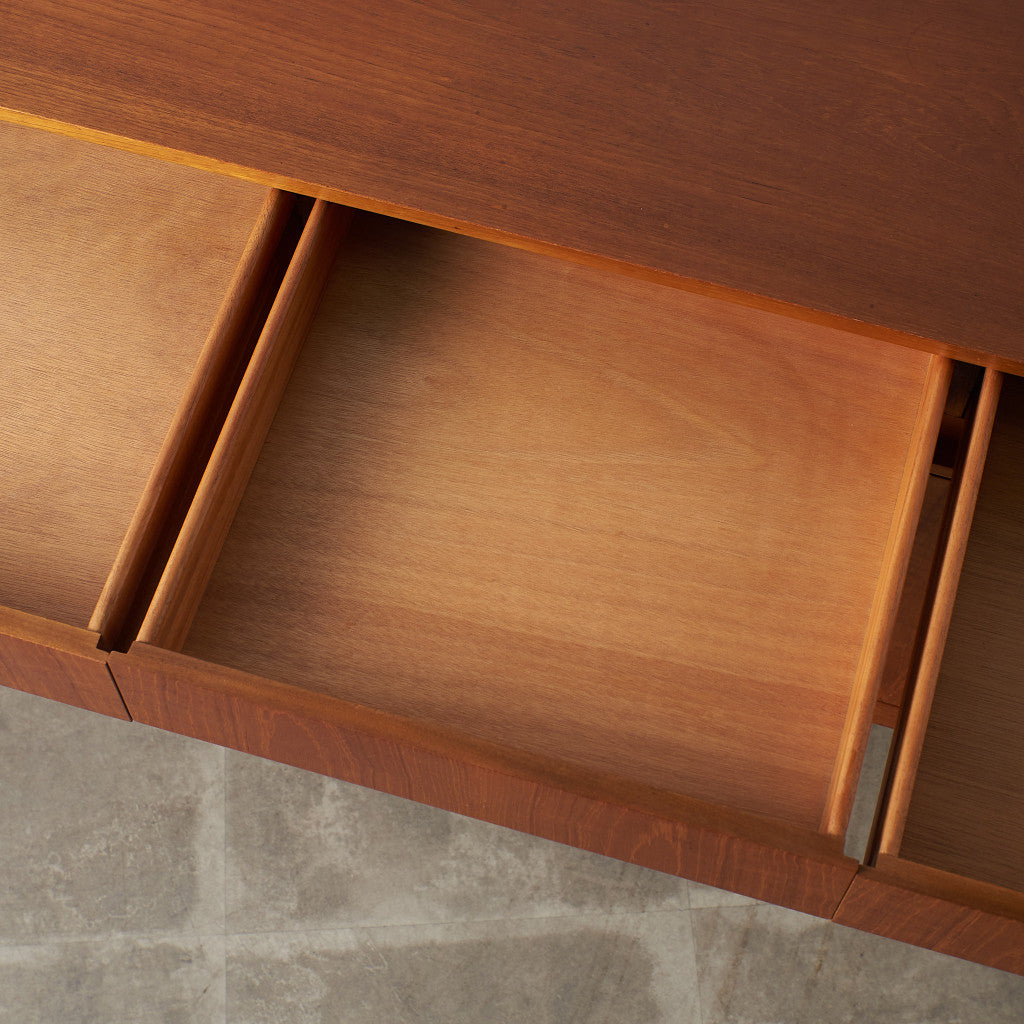 取手や、なめらかな脚フレームの意匠などハイクオリティーなディテールを備えたサイドボード。シンプルなフォルムながら上質な存在感をたたえる一品です。