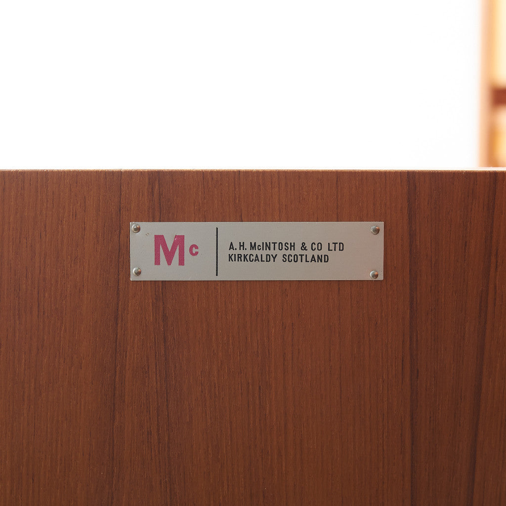 スコットランドの老舗家具ブランド、A.H.マッキントッシュ社。50年代〜70年代、英国のスカンジナビアスタイルブームにはチーク材を用いたデンマークスタイルの家具シリーズを展開。G-PLANやNathan社と並び、北欧スタイルイギリスヴィンテージを代表するメーカーです。スタイリッシュなデザインと素材、造りの良さは現在のイギリスでも非常に高く評価されており、世界中にコレクターが存在しています。