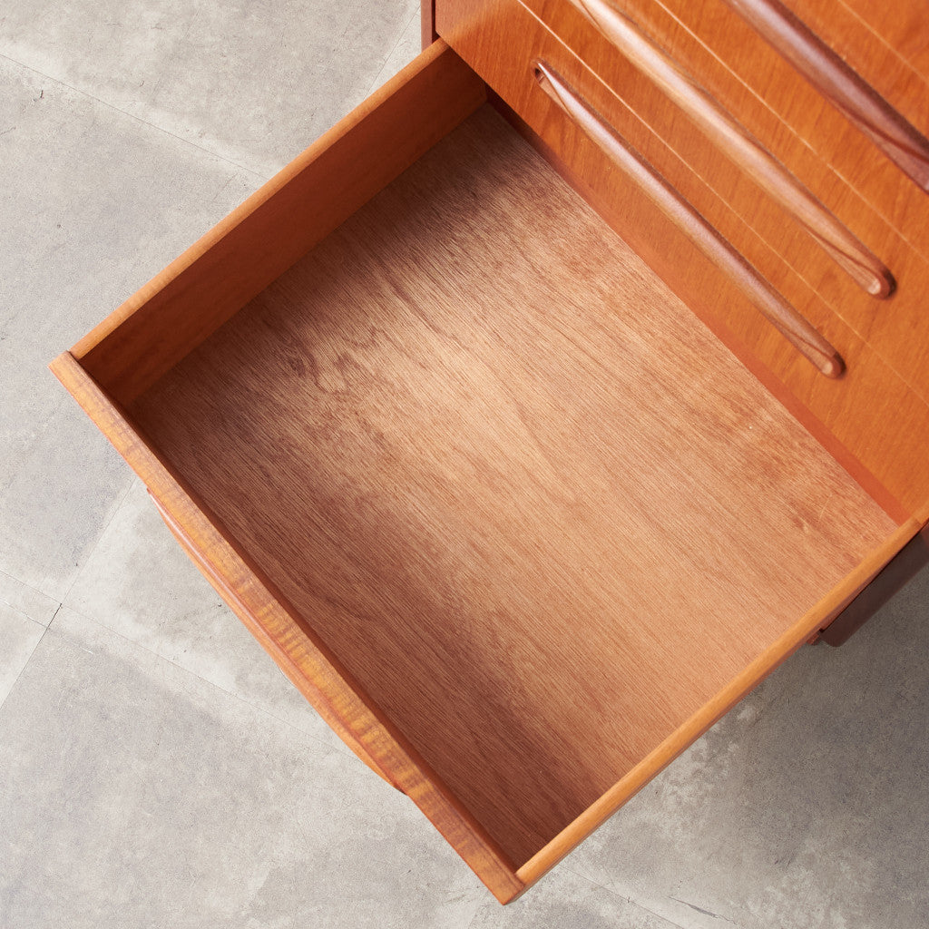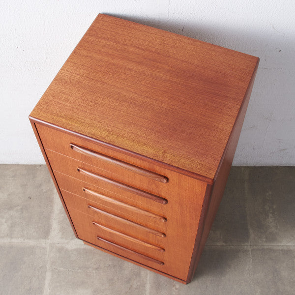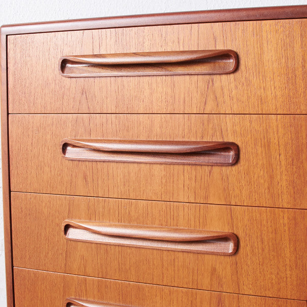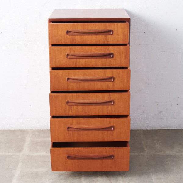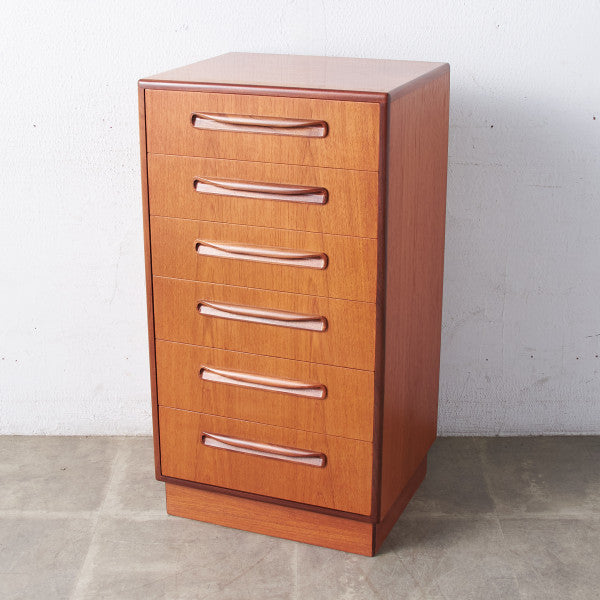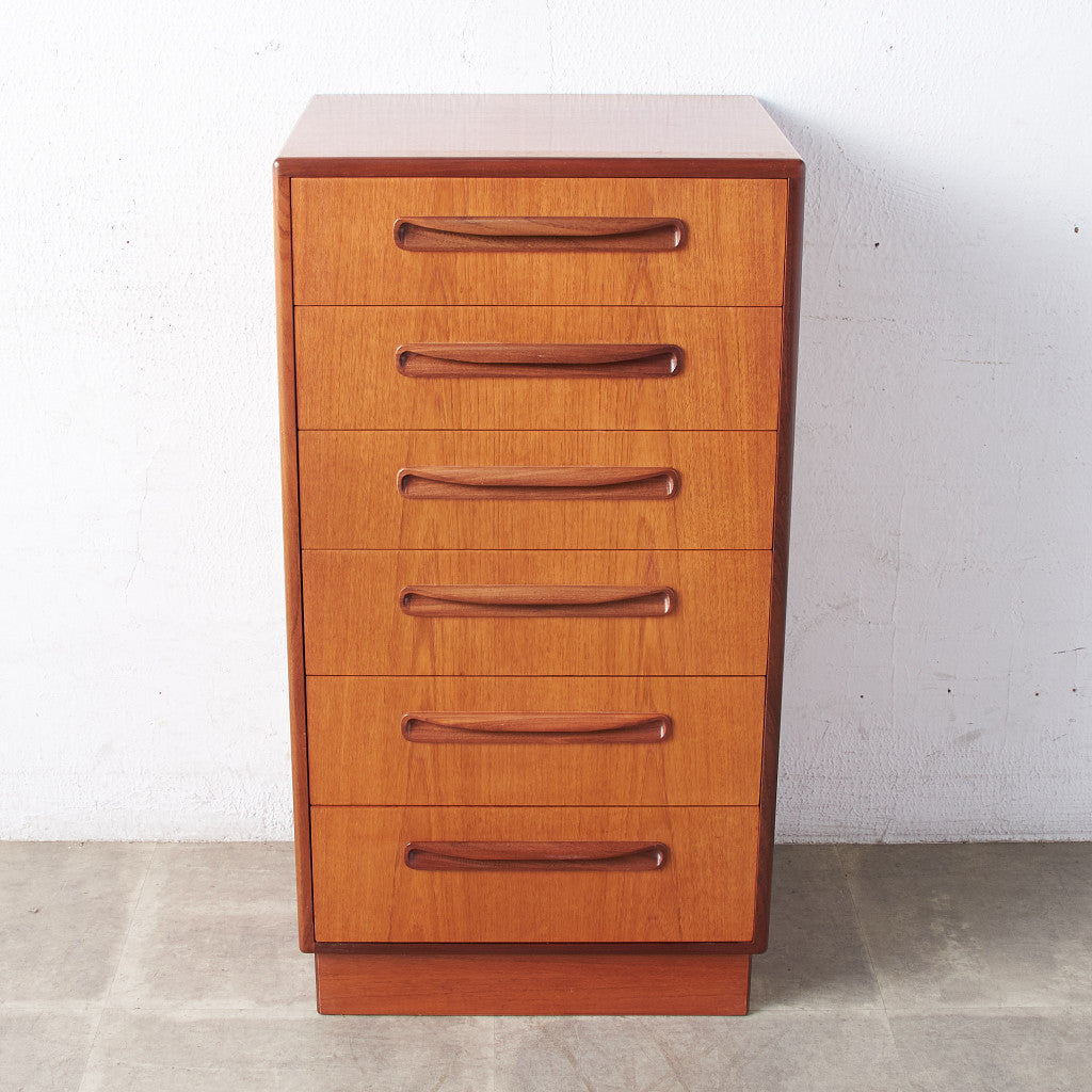 イギリスにおいてミッドセンチュリーを象徴するブランド G-PLAN(ジープラン) による、Victor Bramwell Wilkins(ビクター・ブラムウェル・ウィルキンス) デザイン、『Fresco(フレスコ)』6段チェストです。