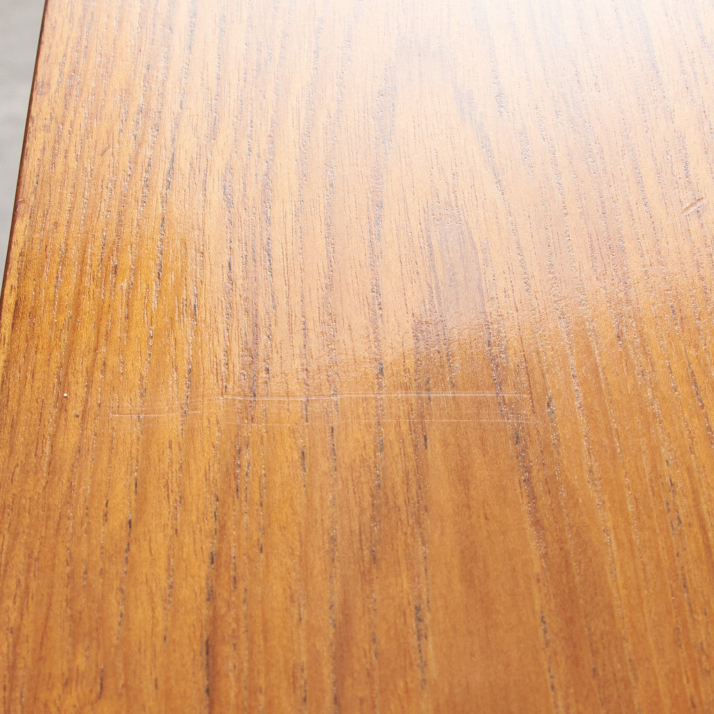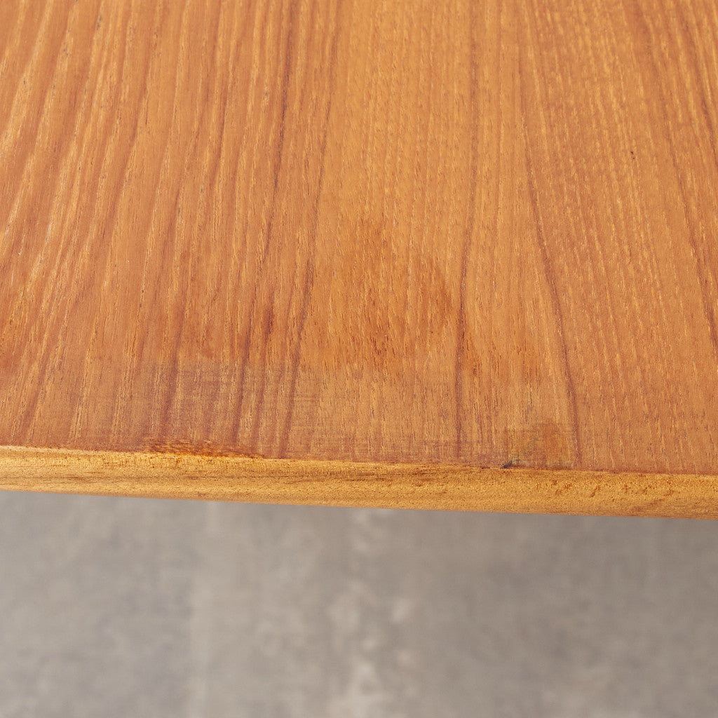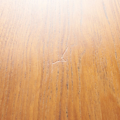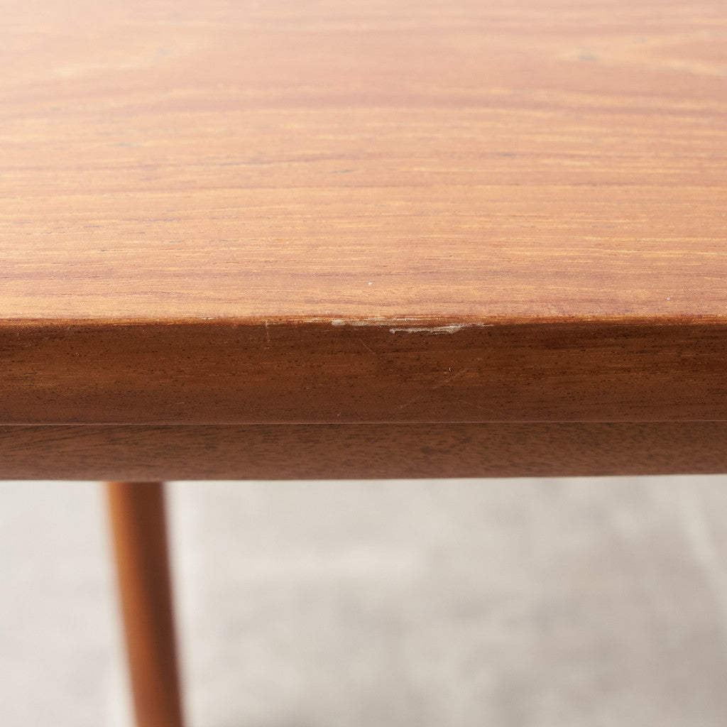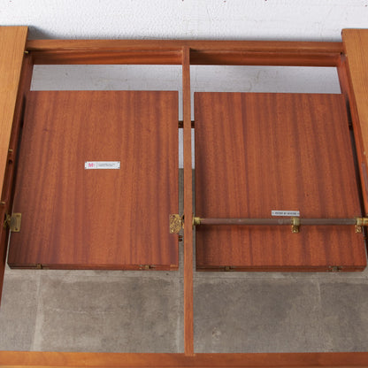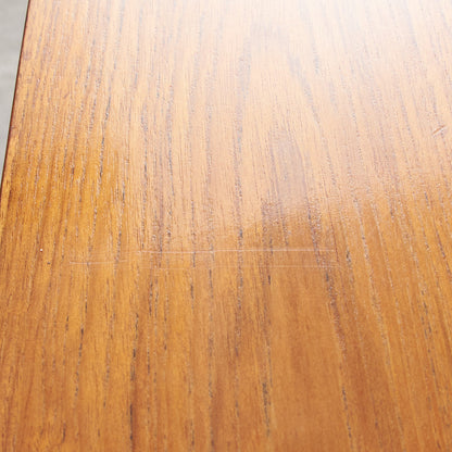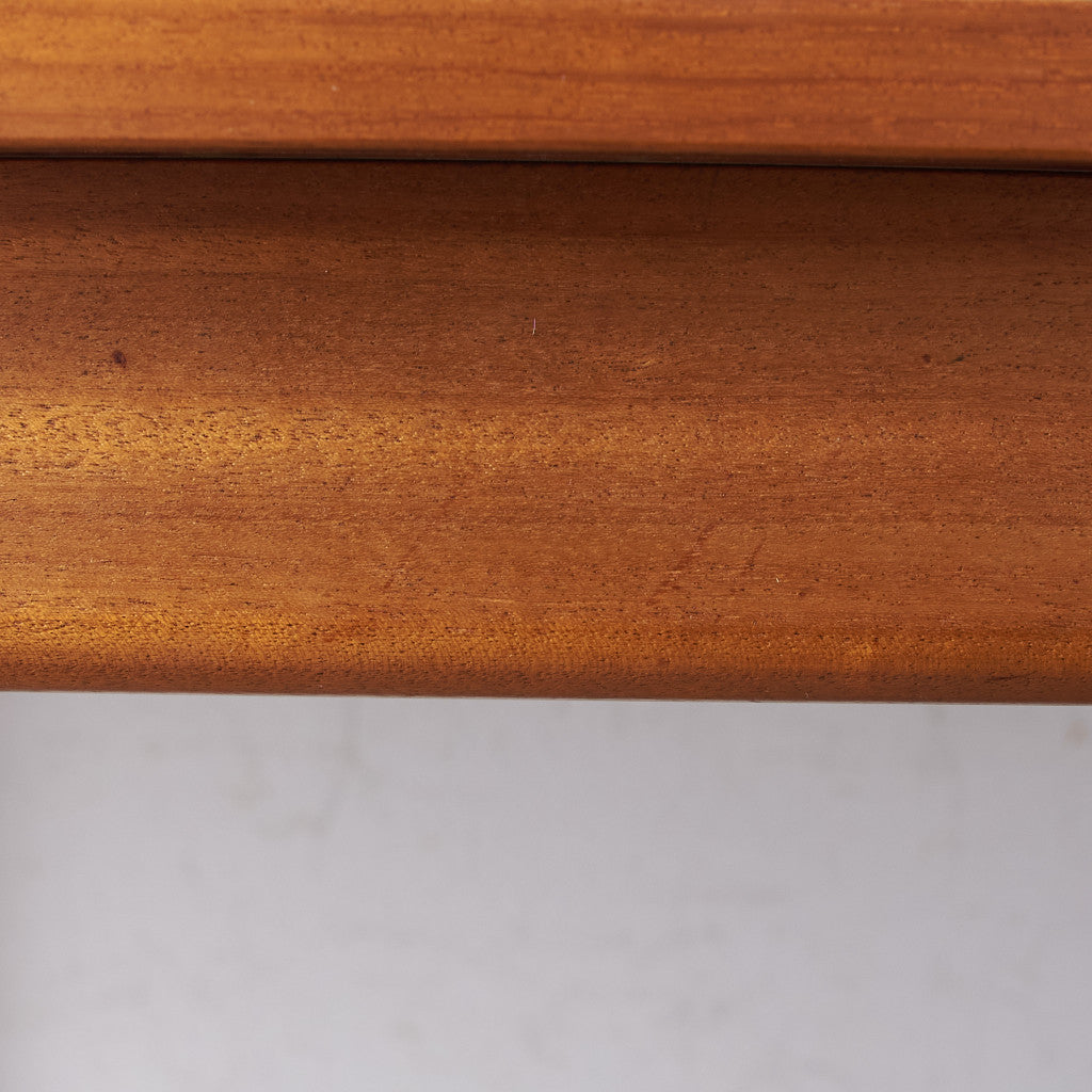 天板下に収納された拡張天板を展開させることで簡単にサイズの拡張が可能なエクステンションテーブル。普段は2人〜4人用、来客時などは天板をさっと広げて6人用、更にはもう一段広げることで8人〜10人へと対応する2段階拡張仕様の大型テーブルです。ヴィンテージチークのあたたかな質感も美しく、G-PLANの家具とは一味違った美しさと魅力を持ったMcINTOSHならではと言えるお品です。