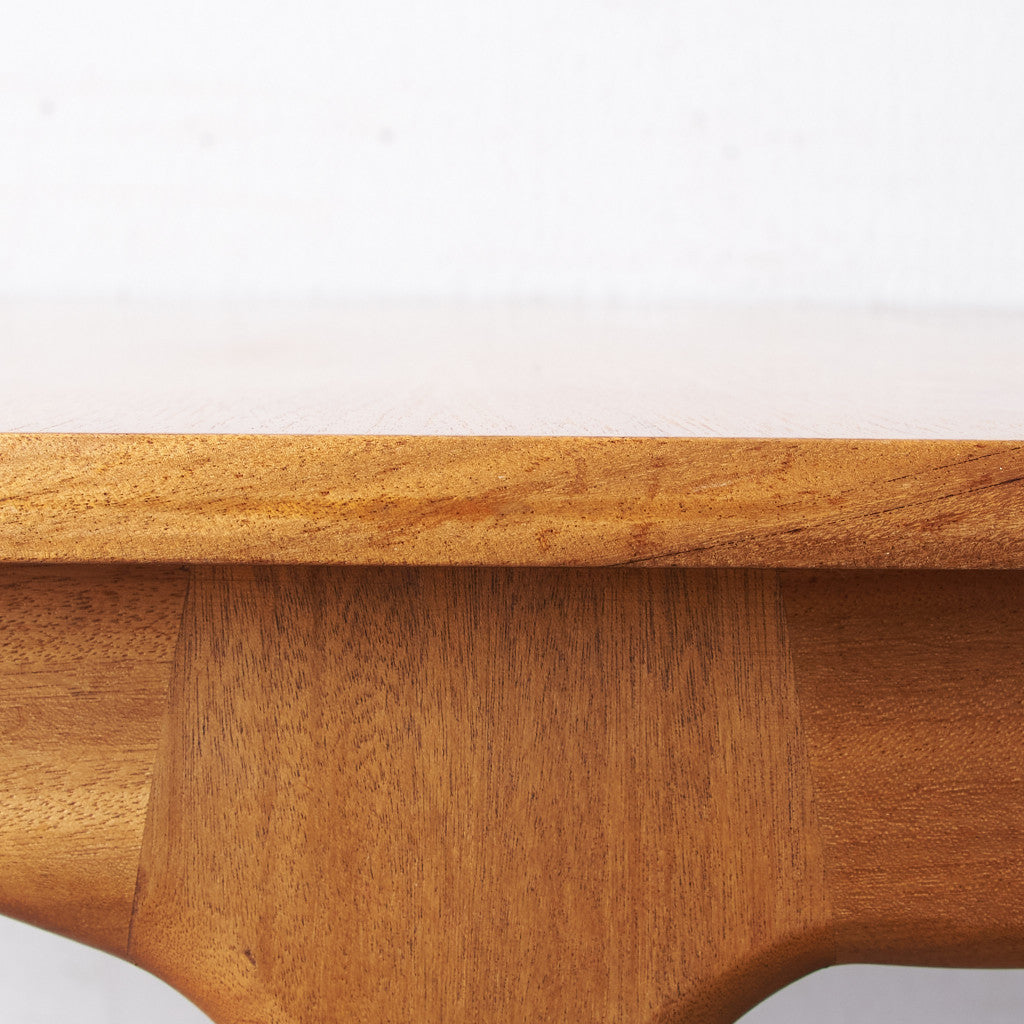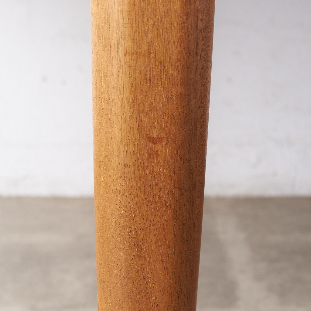 タイ北部からミャンマー産のチーク材は厳しい環境の中、ゆっくりと油分を蓄えながら育ち、鉄の防腐食作用、耐水、防腐、防虫作用が強く、収縮率が少なく木肌も詰まって美しい為、ブラジリアンローズ、ホンジュラスマホガニーと並ぶ世界三大銘木のひとつとして珍重されてきました。この地域のチーク材は「巻き枯らし」と呼ばれる3~5年をかけて立木のまま水抜きをする特殊な伐採手順を踏んでおり非常に素直な加工に適した木質となっています。また、この手順から(ドライチーク)とも呼ばれています。北欧家具や高級家具の素材として使われてきたチーク材ですが、現在は個体数が激減し極めて稀少価値の高い存在となっております。現在流通するチーク材は人工栽培されたインドネシア、ジャワ産の「インドネシアチーク」が主流になっていますが、成長がはやく若木のうちに伐採されるため、木目の美しさや耐久性に劣ります。