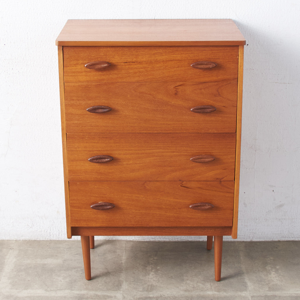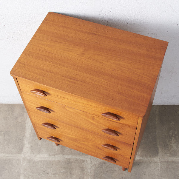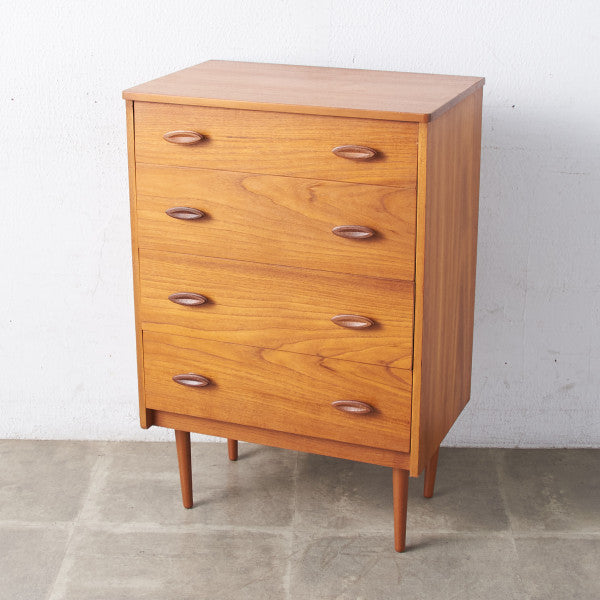 イギリスミッドセンチュリー期にデザインされた、チーク材 ヴィンテージ 4段チェストです。