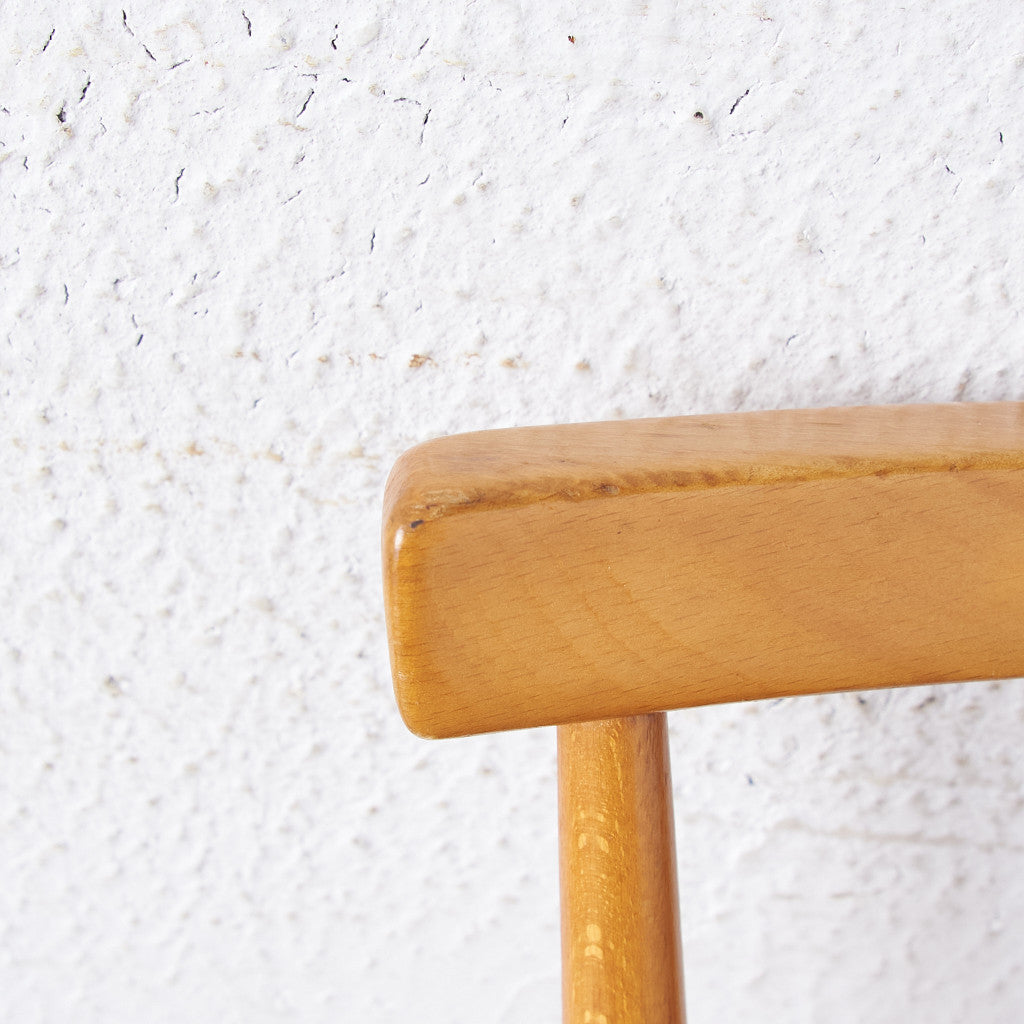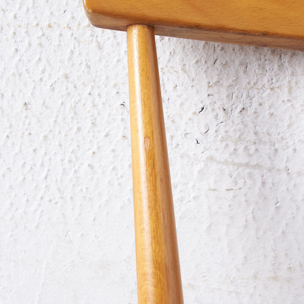 英国の伝統的なウインザーチェアである、コム(櫛形)バックチェアをアレンジしたデザイン。ゴールドスミスチェアに通じるデザインですが、スティックバックチェアのほうが全体的に直線的なフォルムで、よりシンプルな印象を与えます。軽量で知られるアーコールチェアの中でも最も軽いため、さらに扱いやすく使いやすいのが特徴です。すでに生産されていないモデルということもあり、中古市場でも見かける機会が減っています。特にヴィンテージ品は価格が高騰しており、希少な人気チェアとなっています。