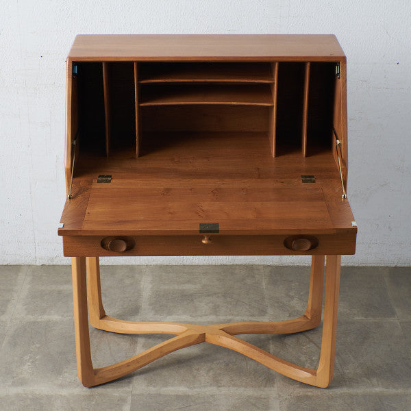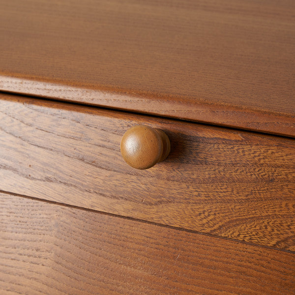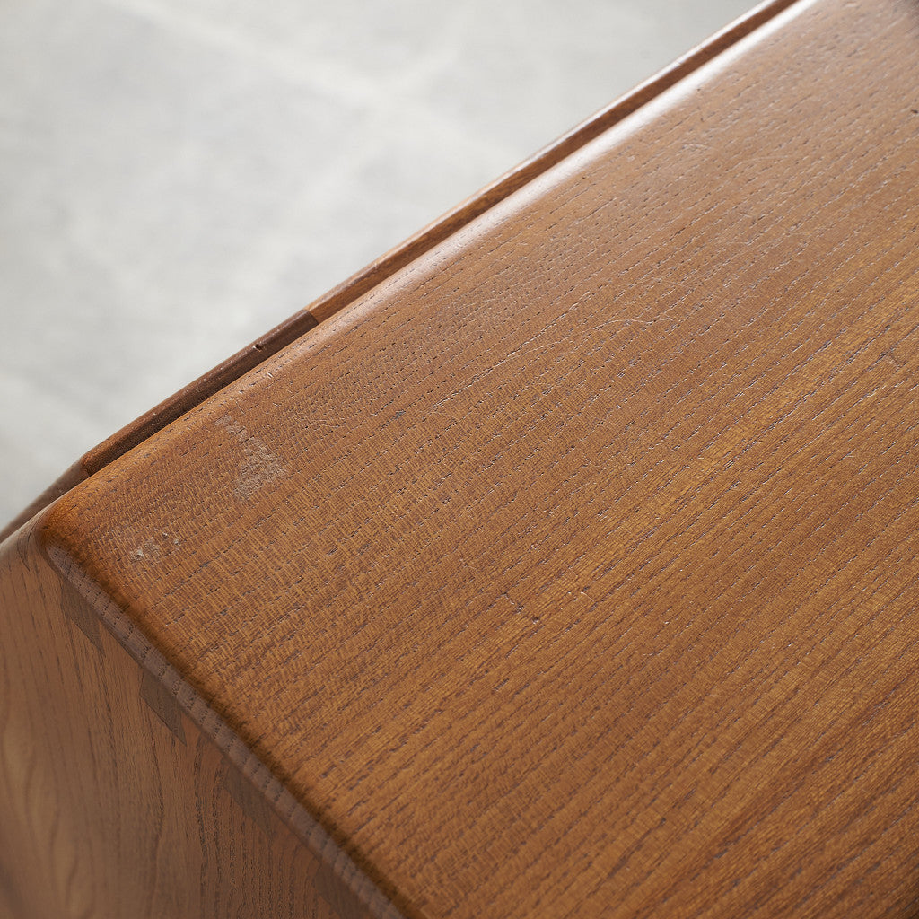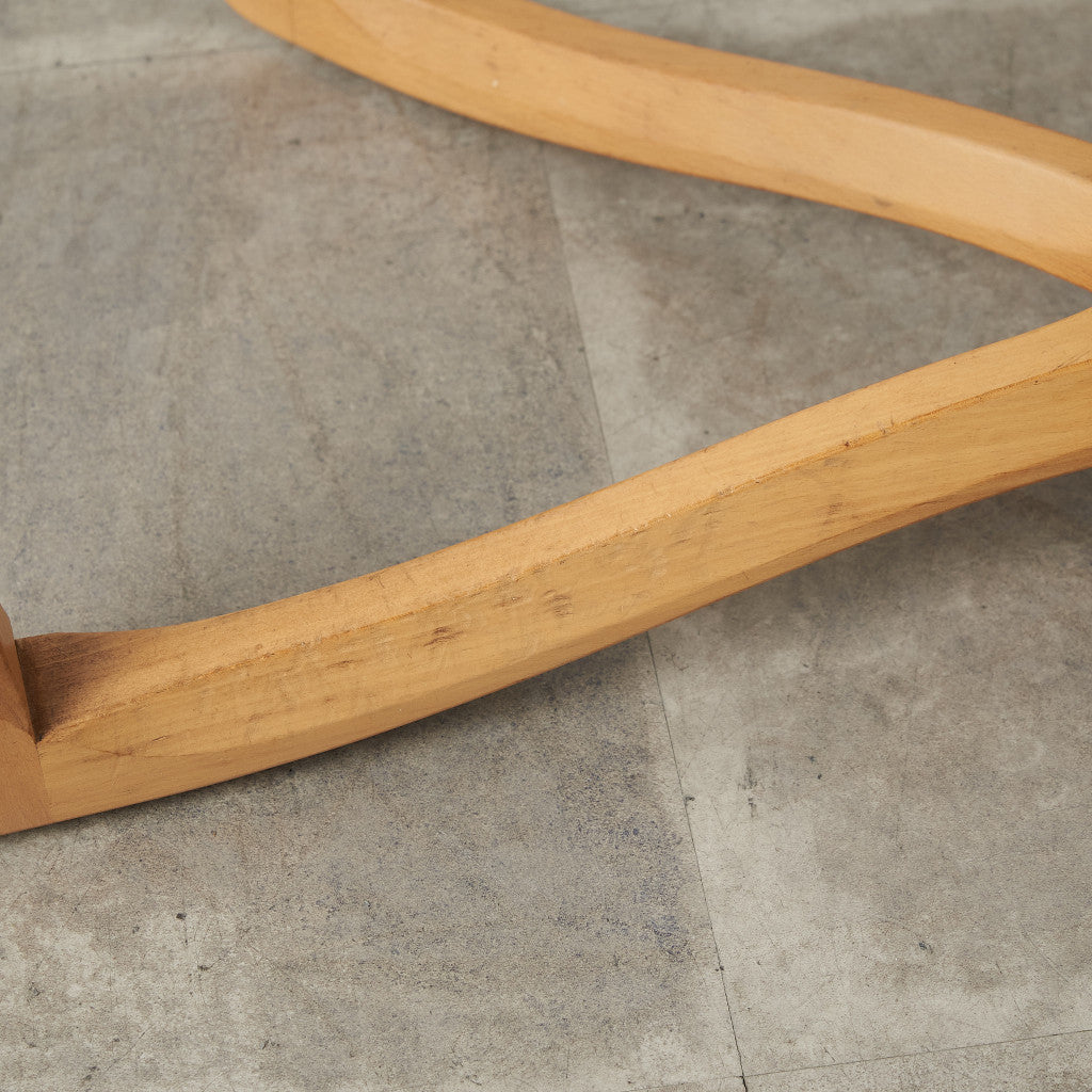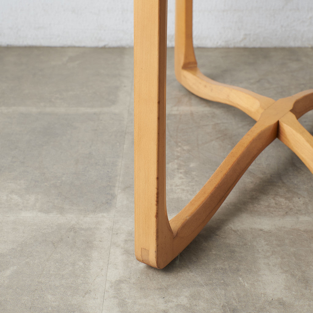アーコール社は現存するイギリスの老舗家具メーカー。新品家具としてもアンティーク品としても同一のモデルで同様に高い支持を受け続けている稀有なブランドです。20世紀初頭にイギリスに移住してきたイタリア生まれの家具デザイナー "ルシアン・アーコラーニ"によって、1920年にハイ・ワイコムにアーコールファニチャーは設立されました。ERCOL社の成功のポイントとして当時乾燥が難しく歪みが生じるため家具材としては不適格として安価であったエルム材の乾燥方法を編み出したことがあります。ウィンザーチェアーに代表される伝統的な製法と、モダンデザインを融合させたコレクションは、さりげないデザインで軽やかでシンプル。1957年デザインのスタッキングチャイルドチェアーは、小学校などの施設で多く使用され一躍ベストセラーブランドとなりました。近年マーガレット・ハウエル(英国の服飾デザイナー)は、アーコール社スタッキングチャイルドチェアーのヴィンテージ品をロンドンショップで展示し、アーコールチェアーは大好評を得ることになりました。それをきっかけにアーコール社は2002年から同商品の復刻版の製造を開始するまでになります。 その後マーガレット・ハウエルのショップでもこの復刻版は販売されることとなり、たちまち人気が高まりました。イエロー×ゴールドの通称ゴールドラベルがついた1960年代〜70年代頃アーコール全盛期の品物は以前よりプレミアム的に価値で取引されておりましたが、近年ではそれ以前のヴィンテージ品ブルーラベルのお品物も含めてイギリス現地で一昔前の倍近くの取引相場にまで高騰しています。