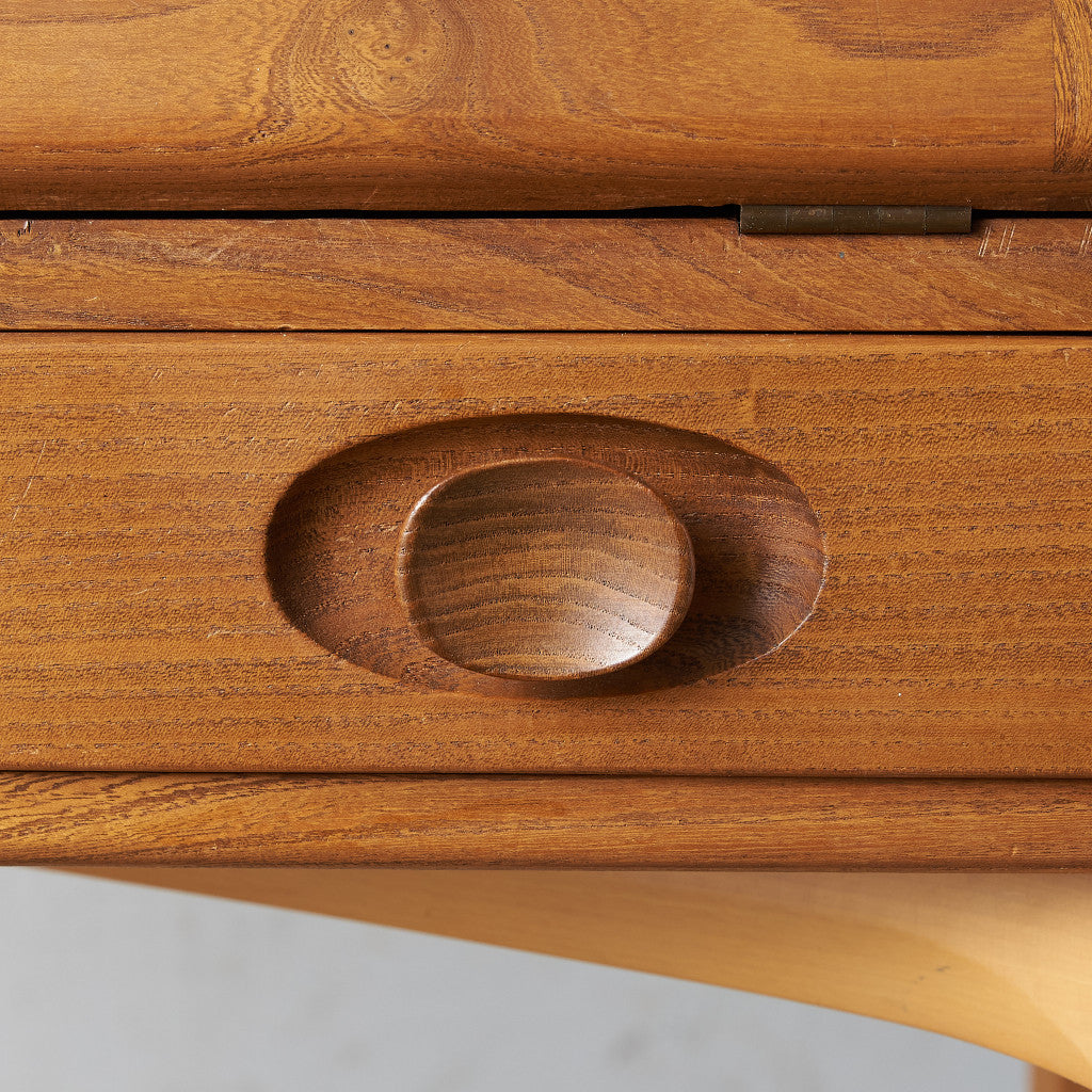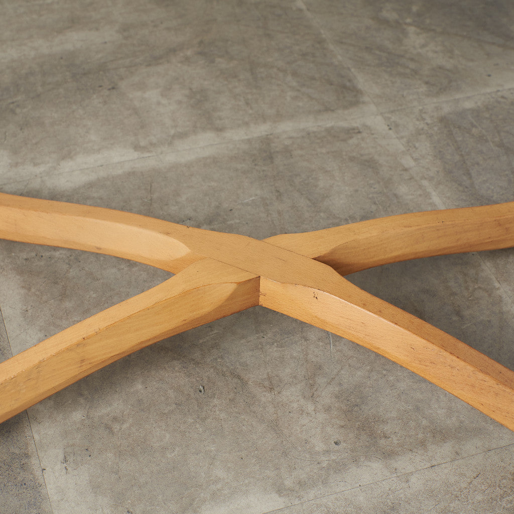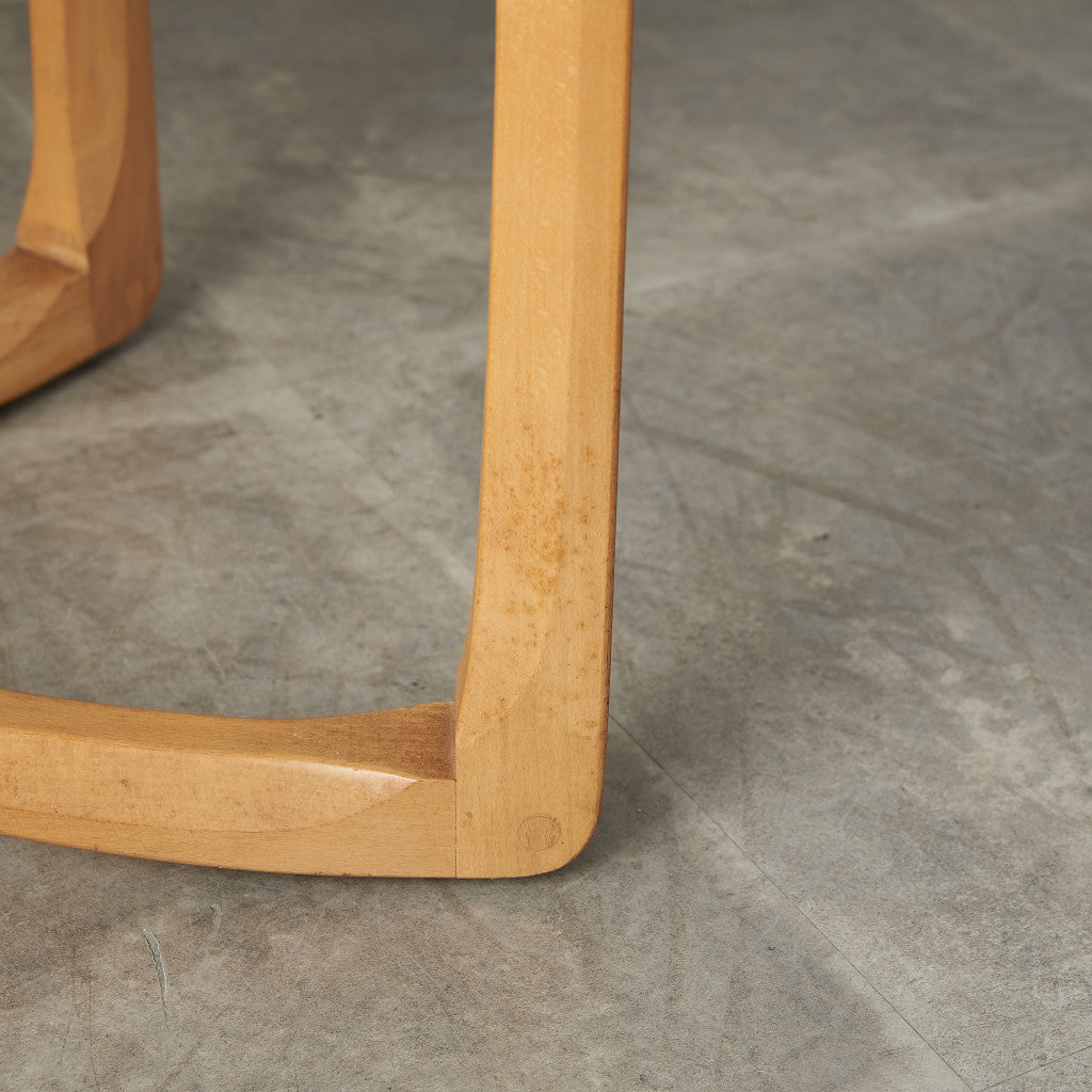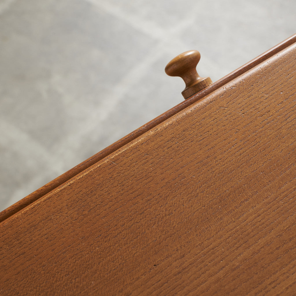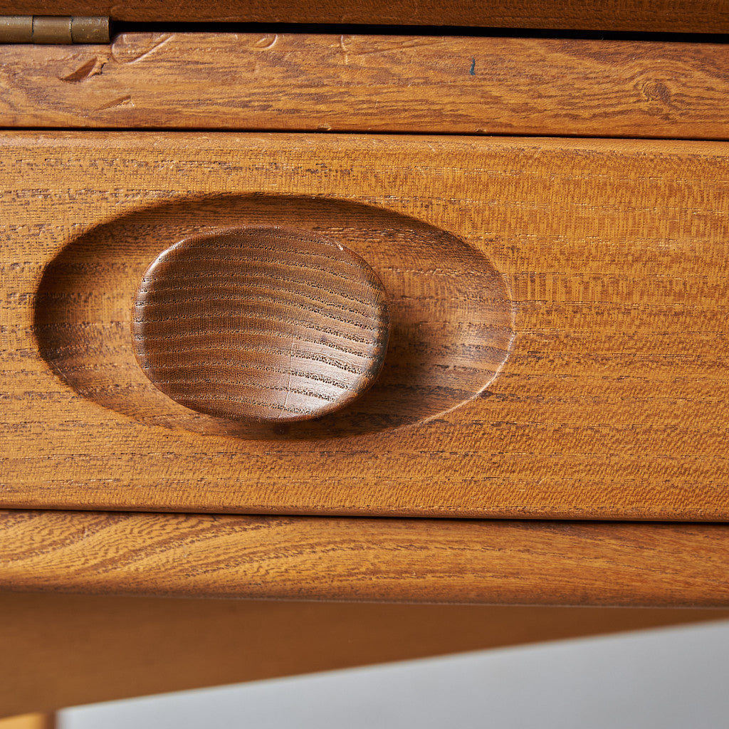 アーコール社は現存するイギリスの老舗家具メーカー。新品家具としてもアンティーク品としても同一のモデルで同様に高い支持を受け続けている稀有なブランドです。20世紀初頭にイギリスに移住してきたイタリア生まれの家具デザイナー "ルシアン・アーコラーニ"によって、1920年にハイ・ワイコムにアーコールファニチャーは設立されました。ERCOL社の成功のポイントとして当時乾燥が難しく歪みが生じるため家具材としては不適格として安価であったエルム材の乾燥方法を編み出したことがあります。ウィンザーチェアーに代表される伝統的な製法と、モダンデザインを融合させたコレクションは、さりげないデザインで軽やかでシンプル。1957年デザインのスタッキングチャイルドチェアーは、小学校などの施設で多く使用され一躍ベストセラーブランドとなりました。近年マーガレット・ハウエル(英国の服飾デザイナー)は、アーコール社スタッキングチャイルドチェアーのヴィンテージ品をロンドンショップで展示し、アーコールチェアーは大好評を得ることになりました。それをきっかけにアーコール社は2002年から同商品の復刻版の製造を開始するまでになります。 その後マーガレット・ハウエルのショップでもこの復刻版は販売されることとなり、たちまち人気が高まりました。イエロー×ゴールドの通称ゴールドラベルがついた1960年代〜70年代頃アーコール全盛期の品物は以前よりプレミアム的に価値で取引されておりましたが、近年ではそれ以前のヴィンテージ品ブルーラベルのお品物も含めてイギリス現地で一昔前の倍近くの取引相場にまで高騰しています。
