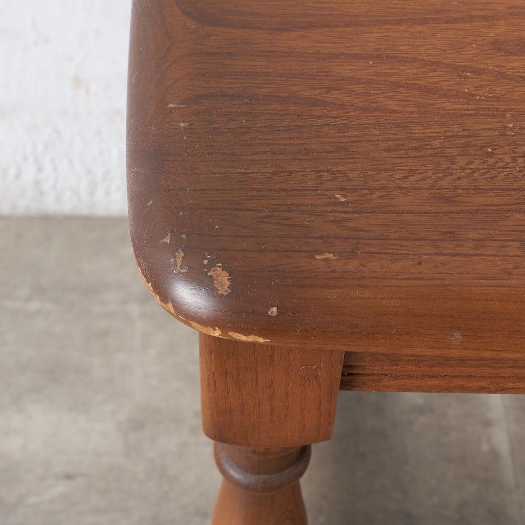 エルム材の美しい木目が際立つシンプルな天板と挽物細工が施された脚が特徴のテーブル。コーヒーテーブルや飾り台などフレキシシブに活躍する使い勝手の良いお品。また、国内のヴィンテージ市場であまり出回っていないレアなアイテムです。
