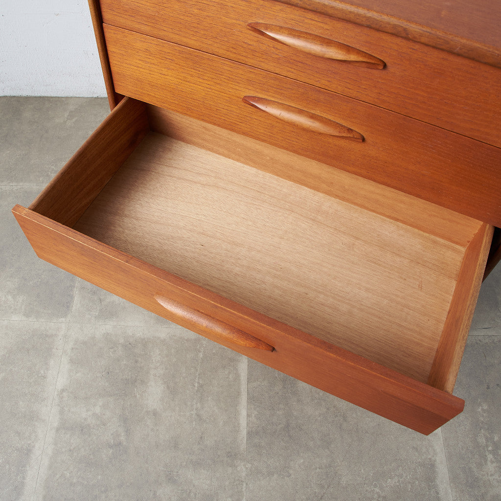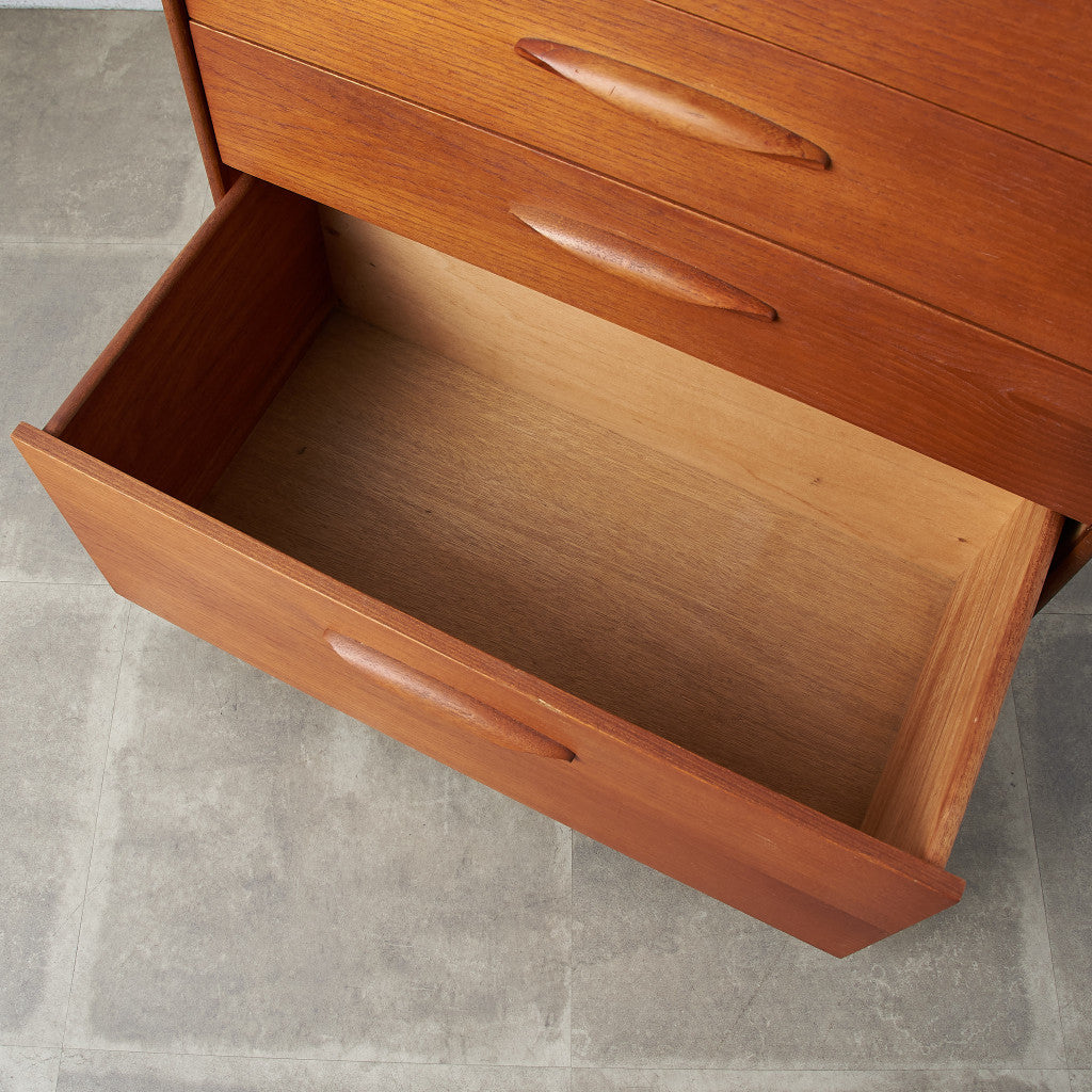 英国ミッドセンチュリー期の家具メーカー、Austinsuite(オースティン・スイート)による、チーク材を使用した、ヴィンテージ 4段チェストです。