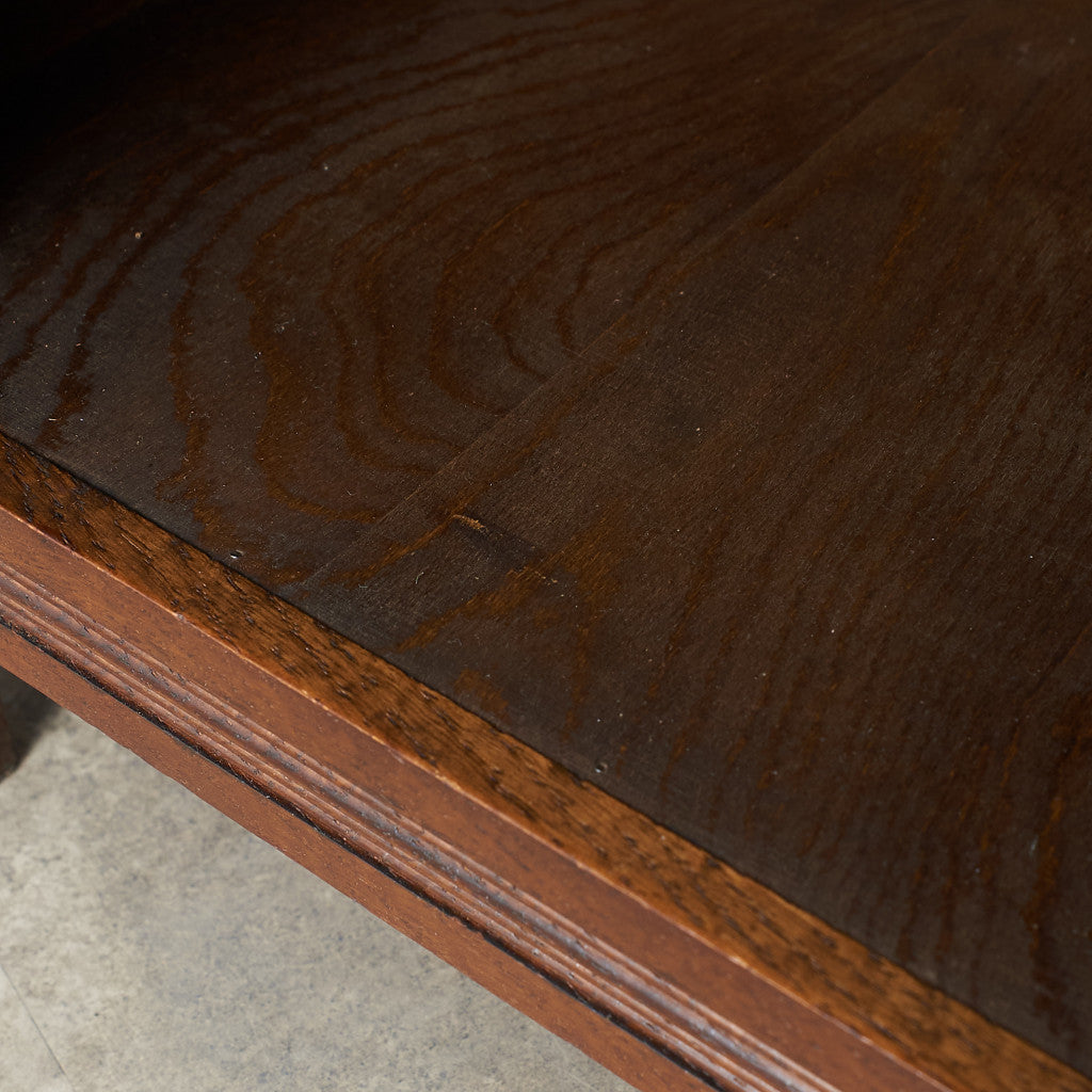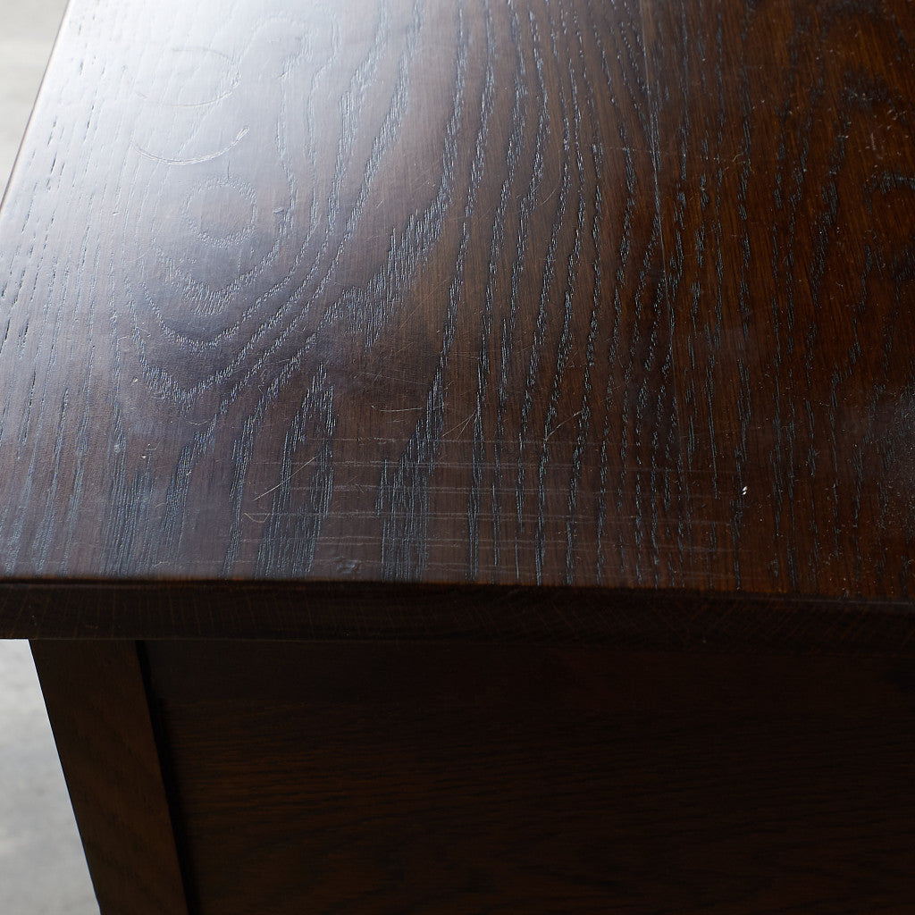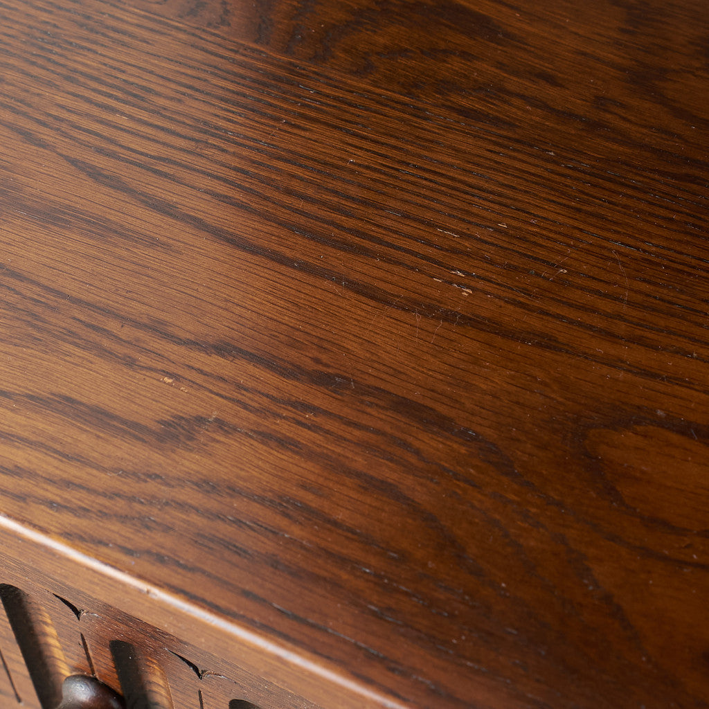力強い木目を持つオークを用い、英国伝統様式を忠実に再現。細部にまで施された細かな装飾など、シックなデザインが魅力的です。オーク材ならではの心地よい温もり、程よく古びた風合いが素朴で優しい雰囲気を演出します。