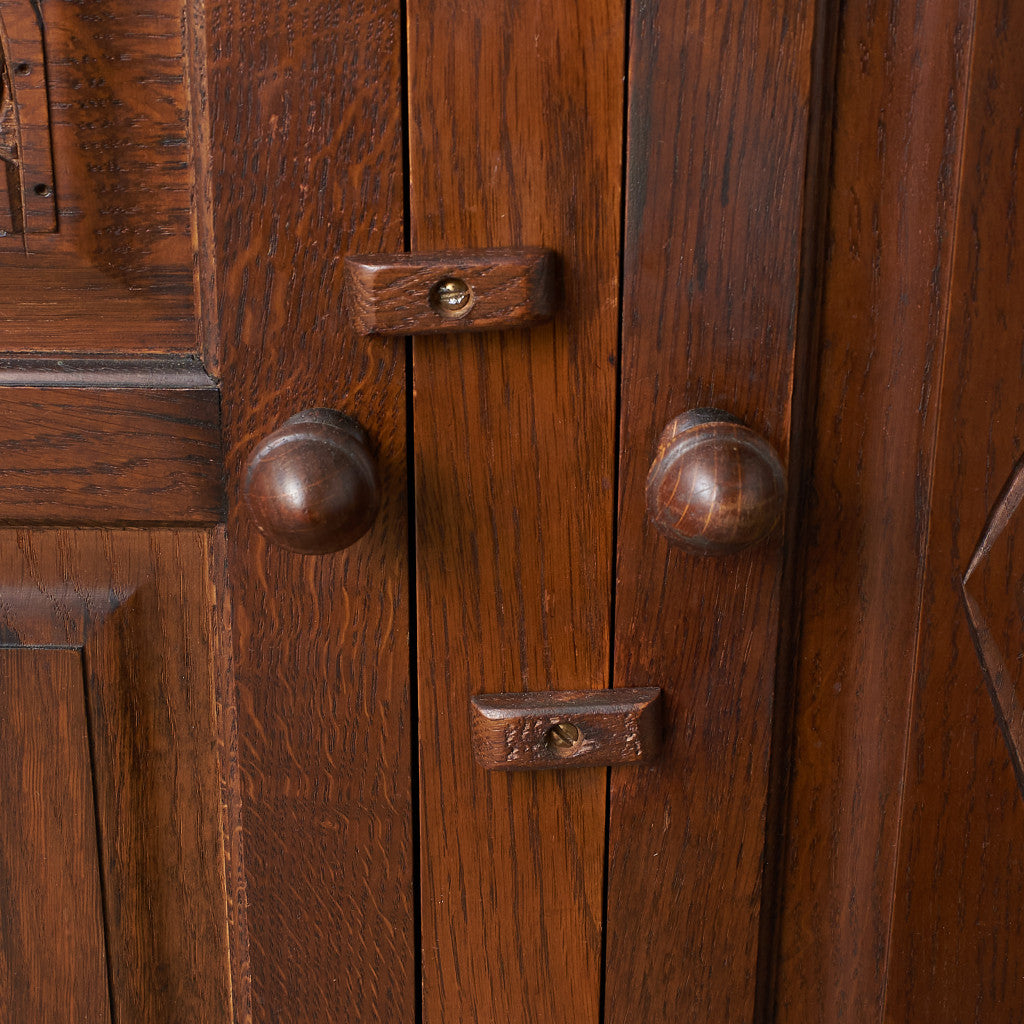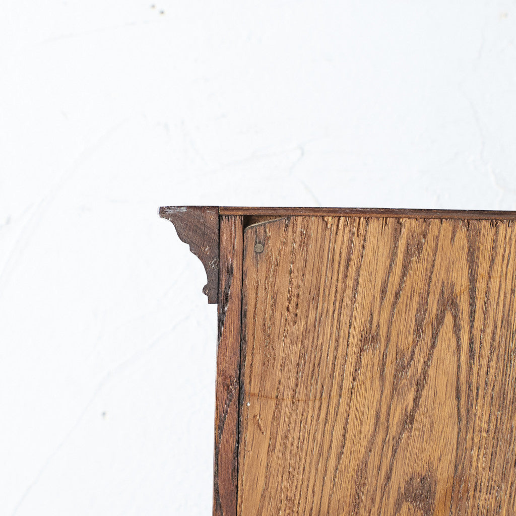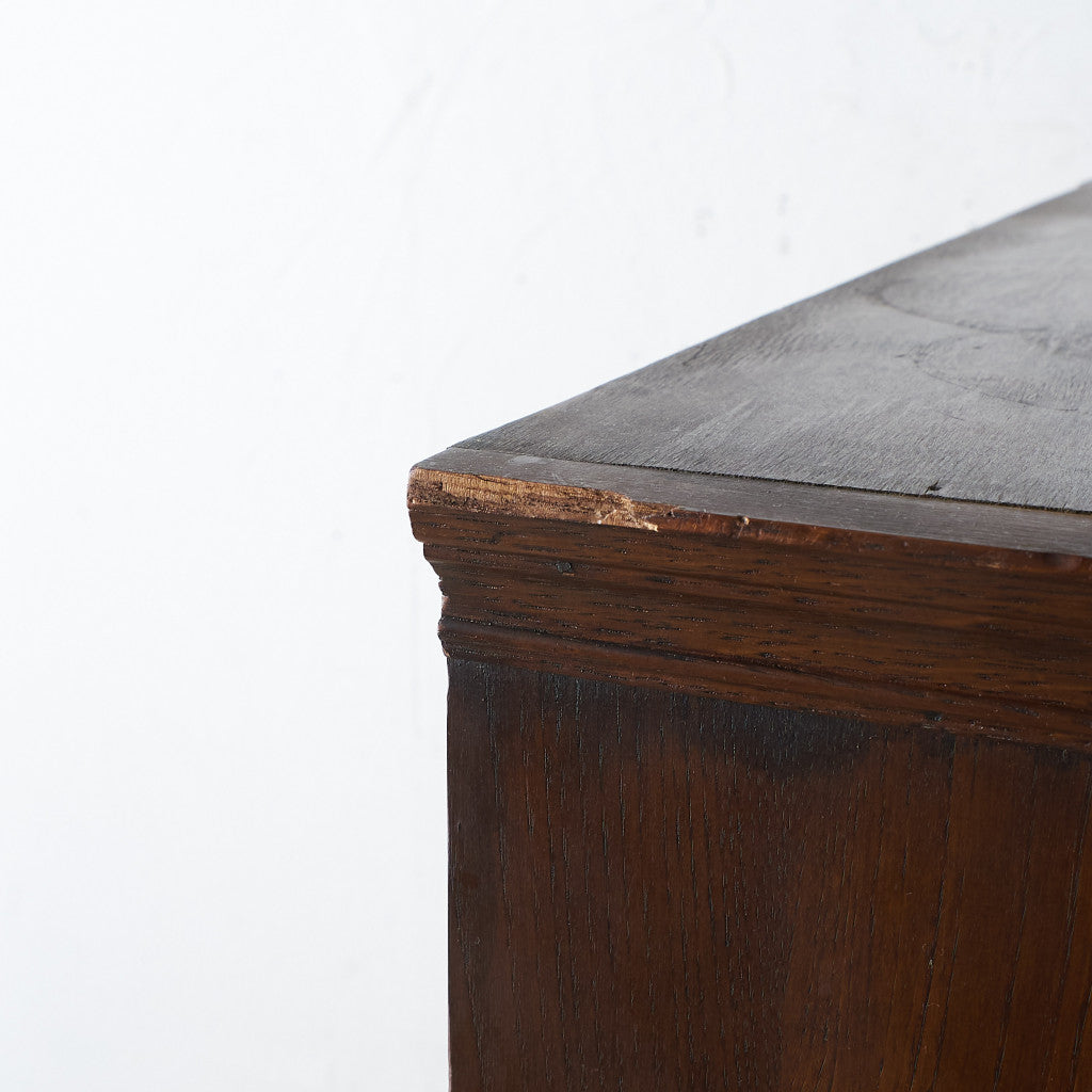 力強い木目を持つオークを用い、英国伝統様式を忠実に再現。細部にまで施された細かな装飾など、シックなデザインが魅力的です。オーク材ならではの心地よい温もり、程よく古びた風合いが素朴で優しい雰囲気を演出します。
