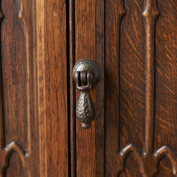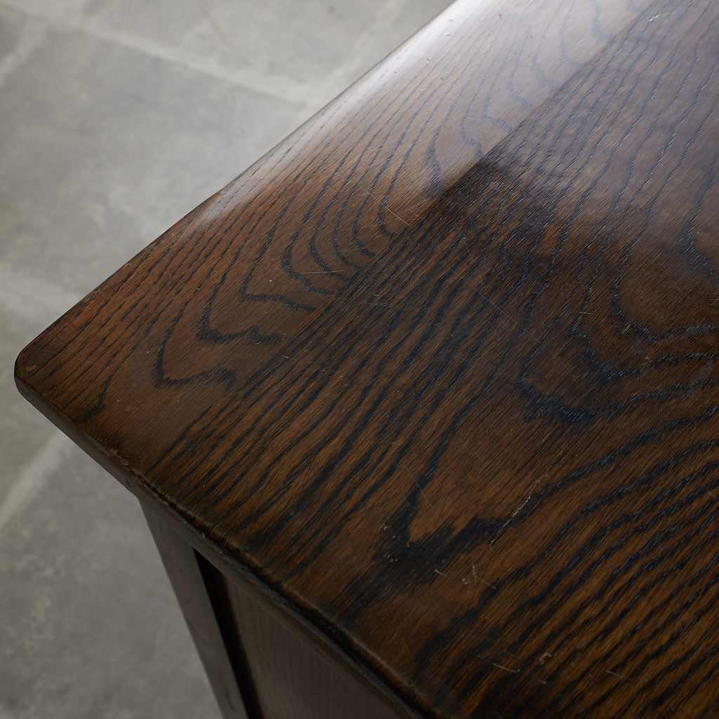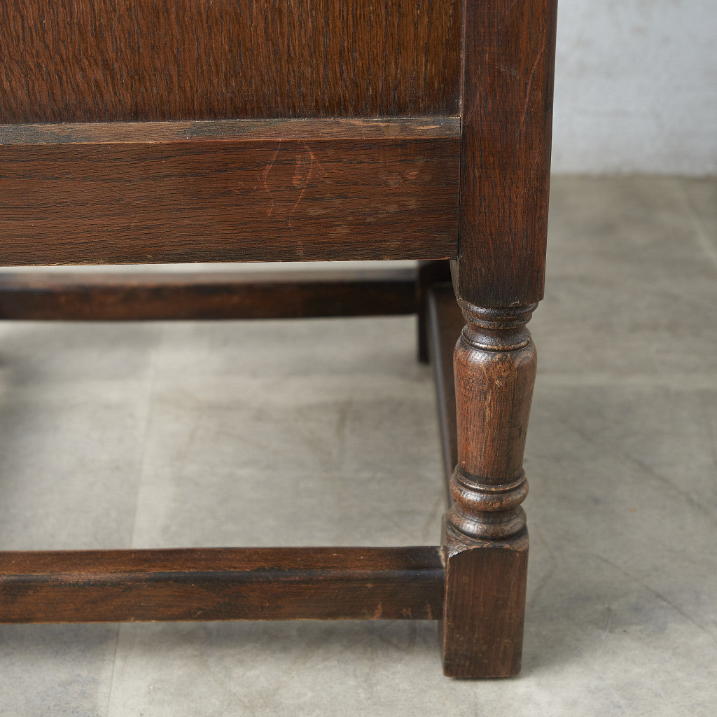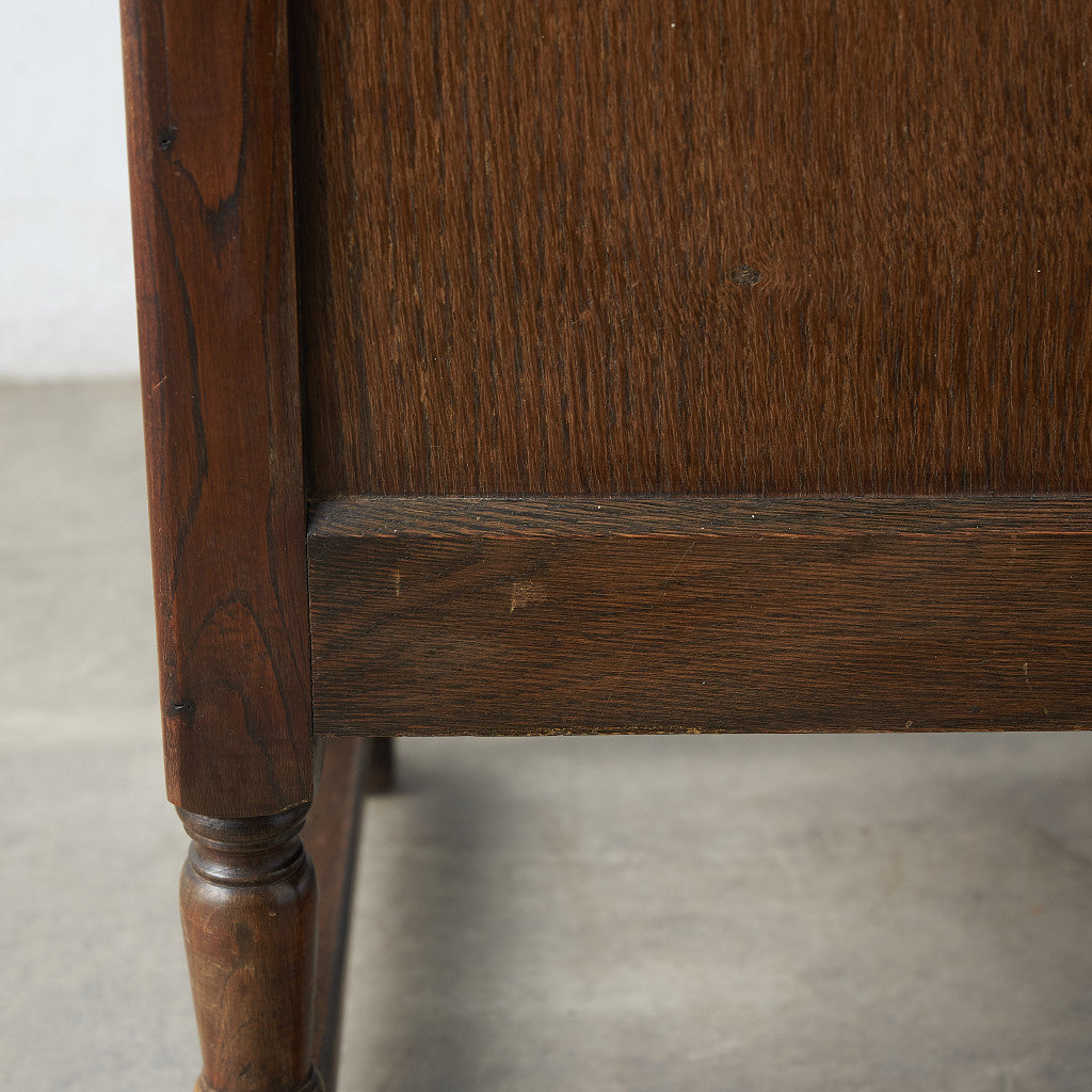 力強い木目を持つオーク材を用い、英国伝統様式を忠実に再現。細部にまで施された細かな装飾などシックなデザインが魅力です。オーク材ならではの心地よい温もり、程よく古びた風合いが素朴で優しい雰囲気を演出します。