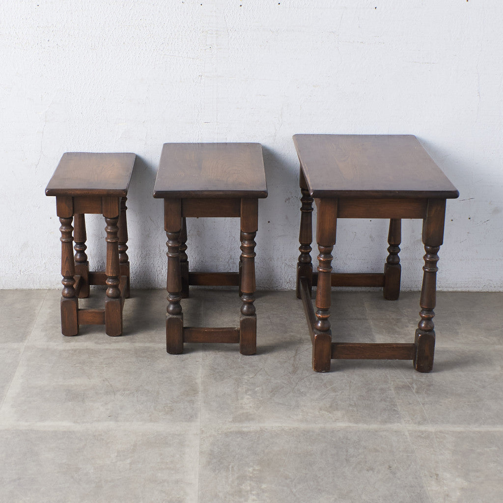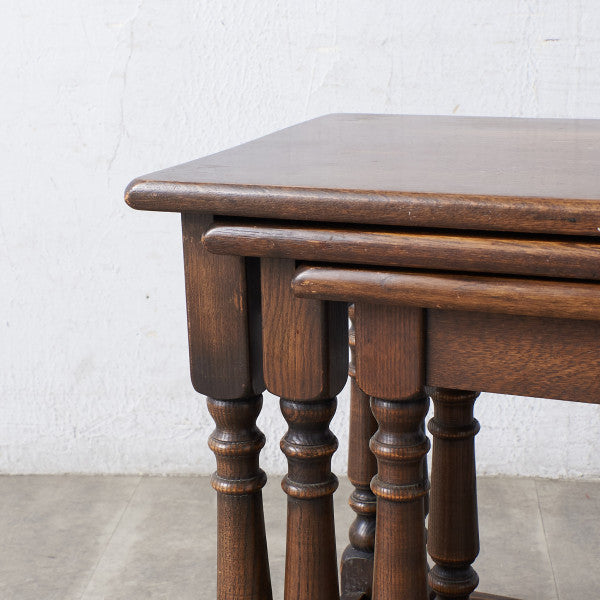用途に合わせて引き出したり、纏めたりできるとても便利な入子構造のネストテーブル。リビングのサイドテーブルや寝室に置くナイトテーブルとして、フレキシブルにお使い頂けます。
