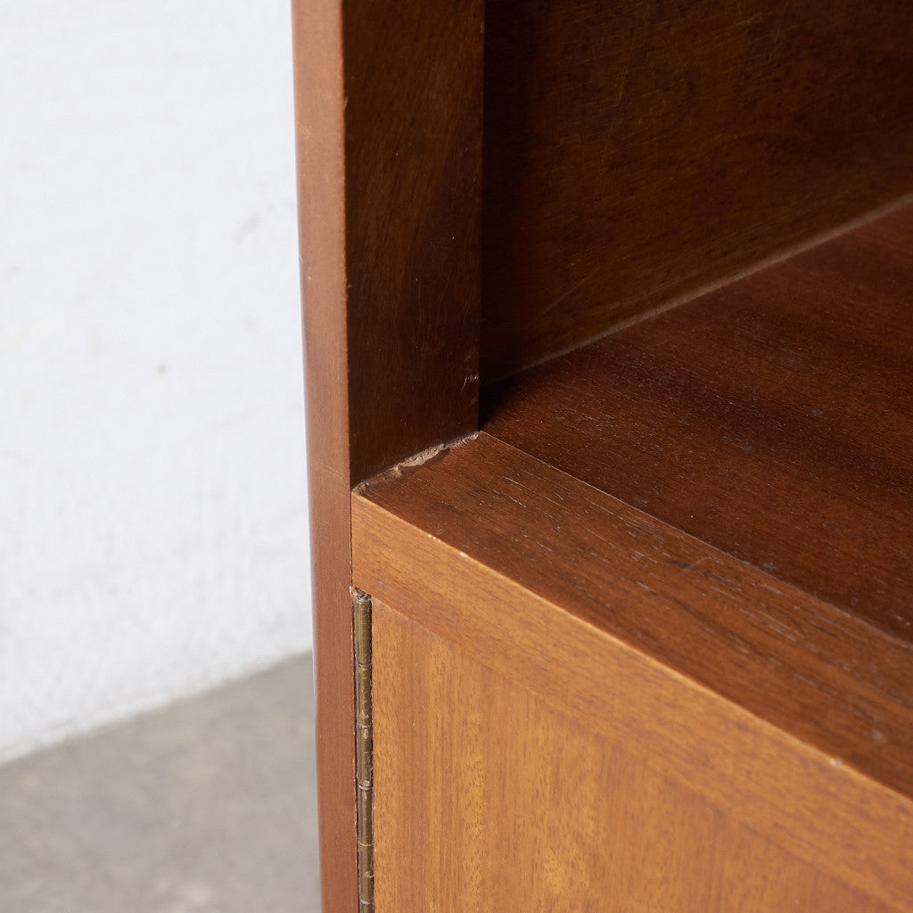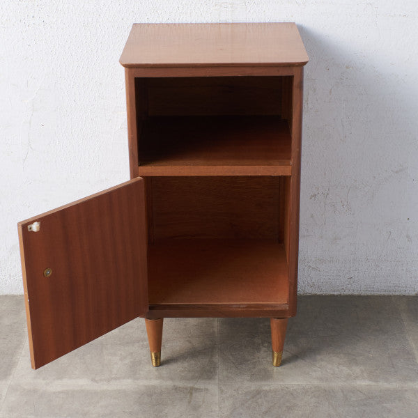 褐色の木肌が美しい、ベッドサイドキャビネット。実用的でありながらも作り手のこだわりを感じさせる、北欧の年代物とも相性の良いヴィンテージファニチャーです。