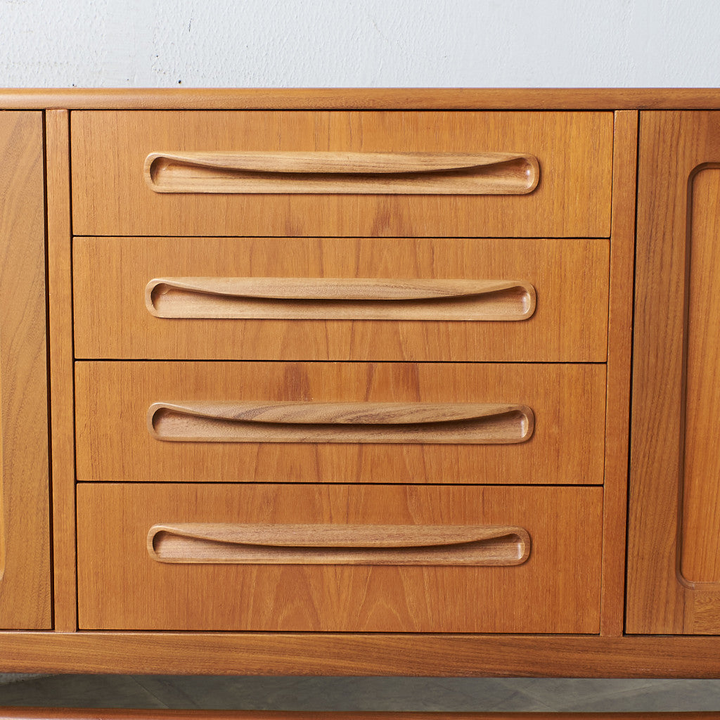 英国ミッドセンチュリー期を代表するブランド G-PLAN(ジープラン) による、Victor Bramwell Wilkins(ビクター・ブラムウェル・ウィルキンス)デザイン『Fresco(フレスコ)』脚付きロングサイドボードです。